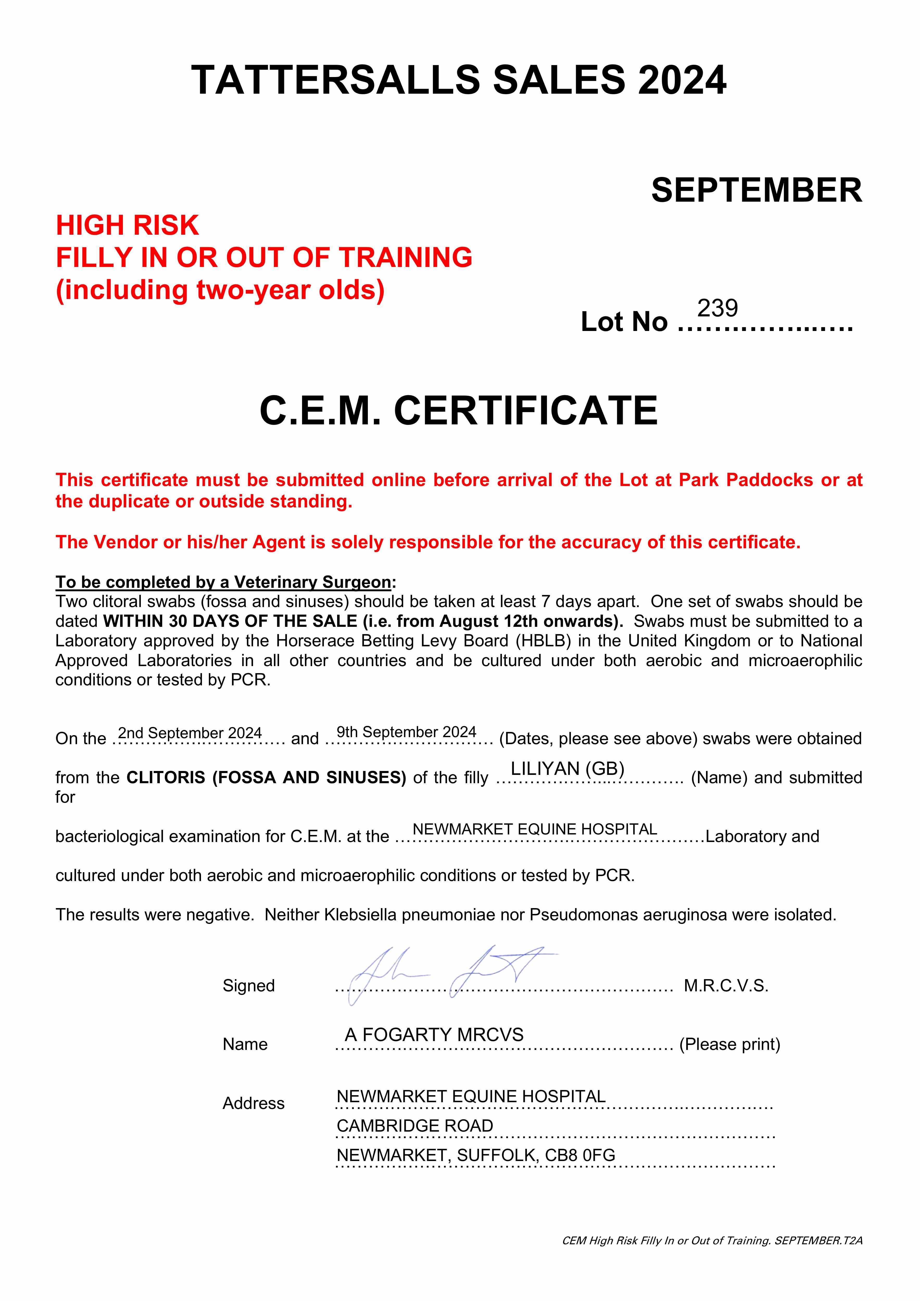 Somerville Yearling Sale 2024 lot 299 C. by Ubettabelieveit (IRE) 2023, Mickley Stud Ltd.=>Clare Hobson Racing 10,000 gns