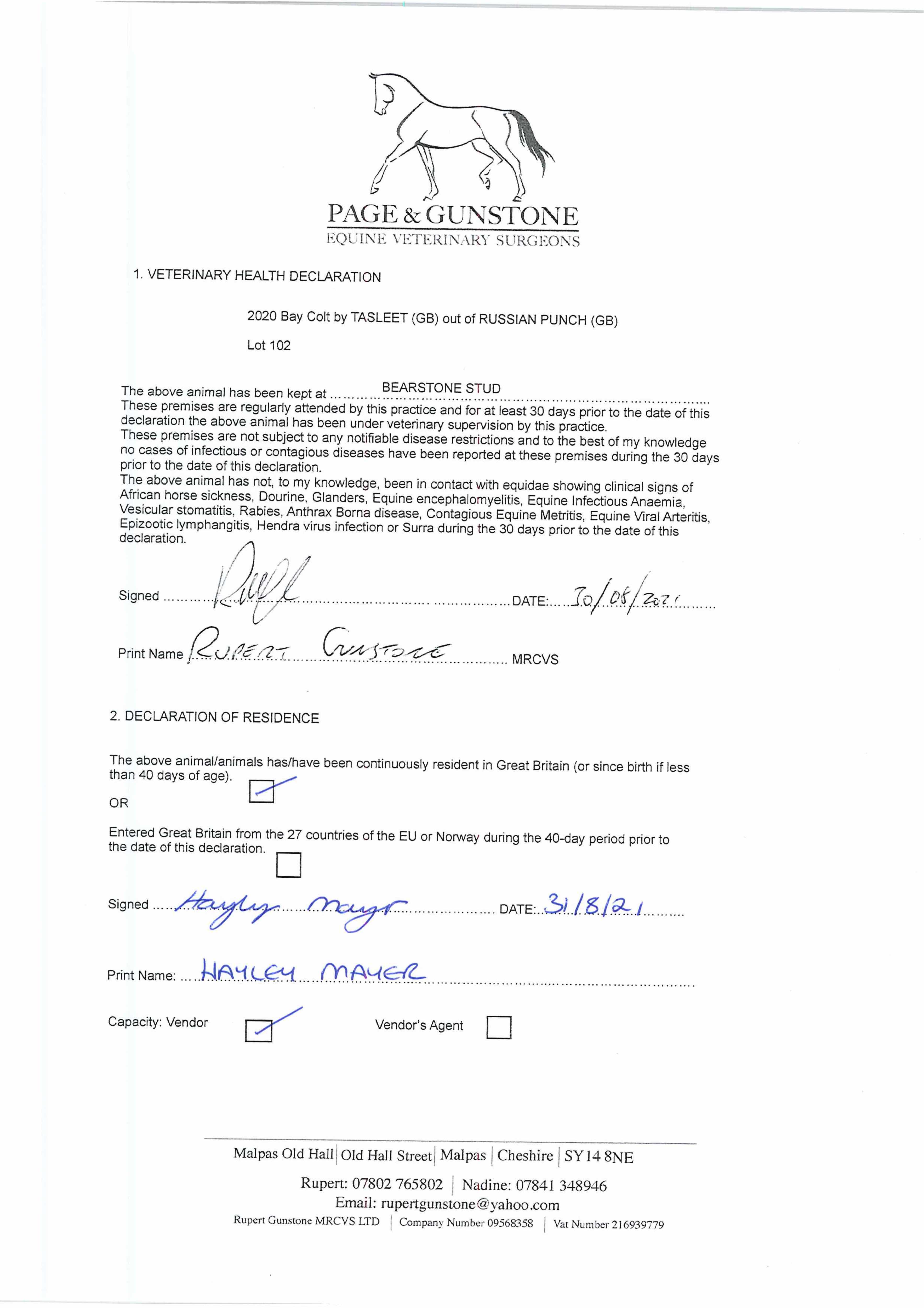 Consignor: Bearstone Stud