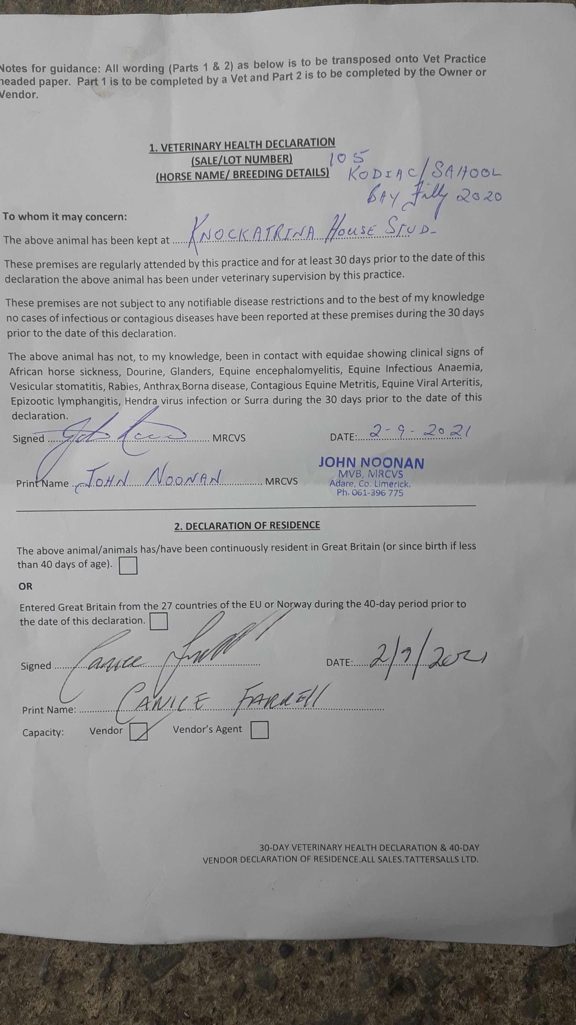 December Foal Sale 2020 lot 764, Knockatrina House, Ireland=>Lot Not Sold 37,000 gns