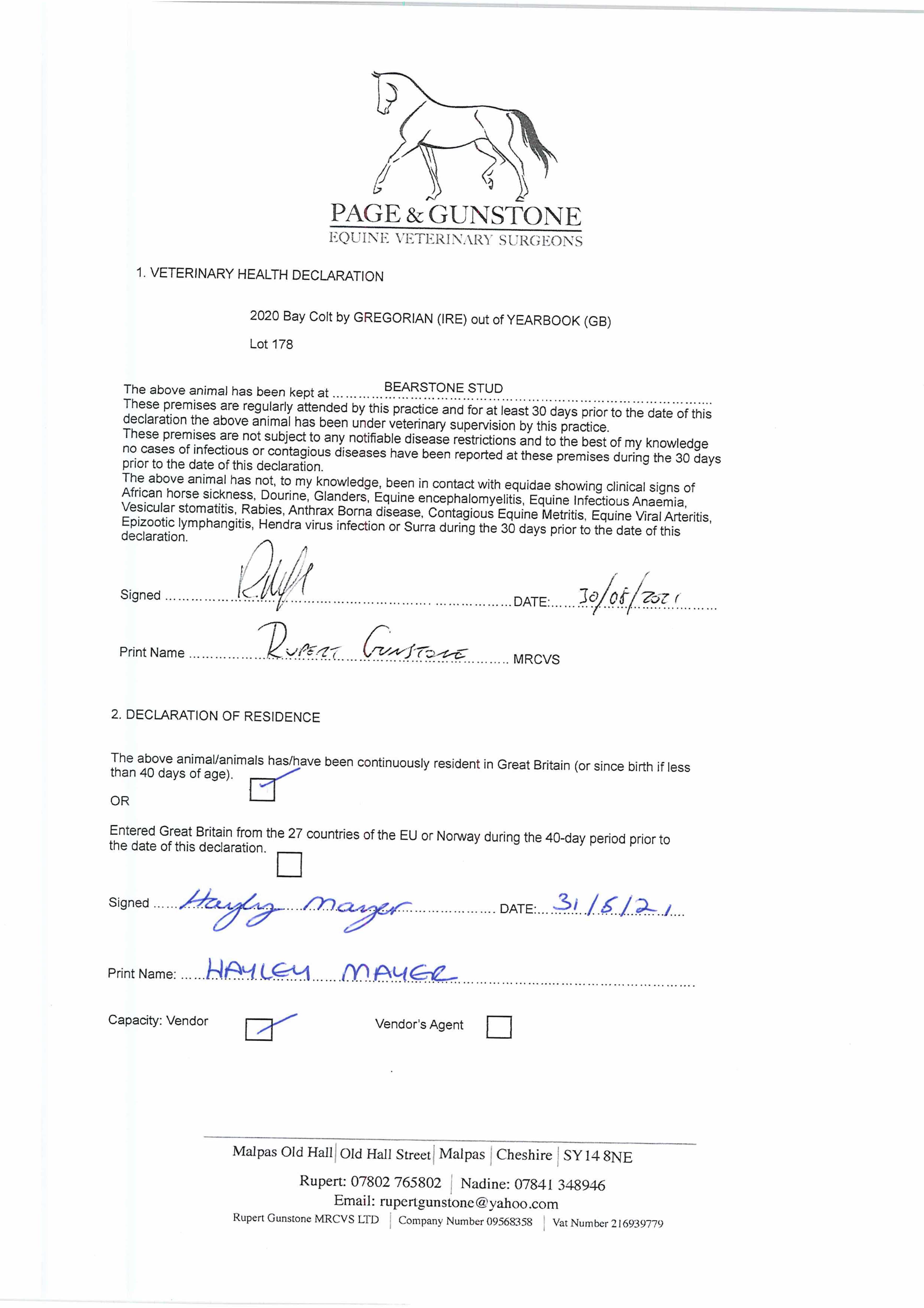 Consignor: Bearstone Stud