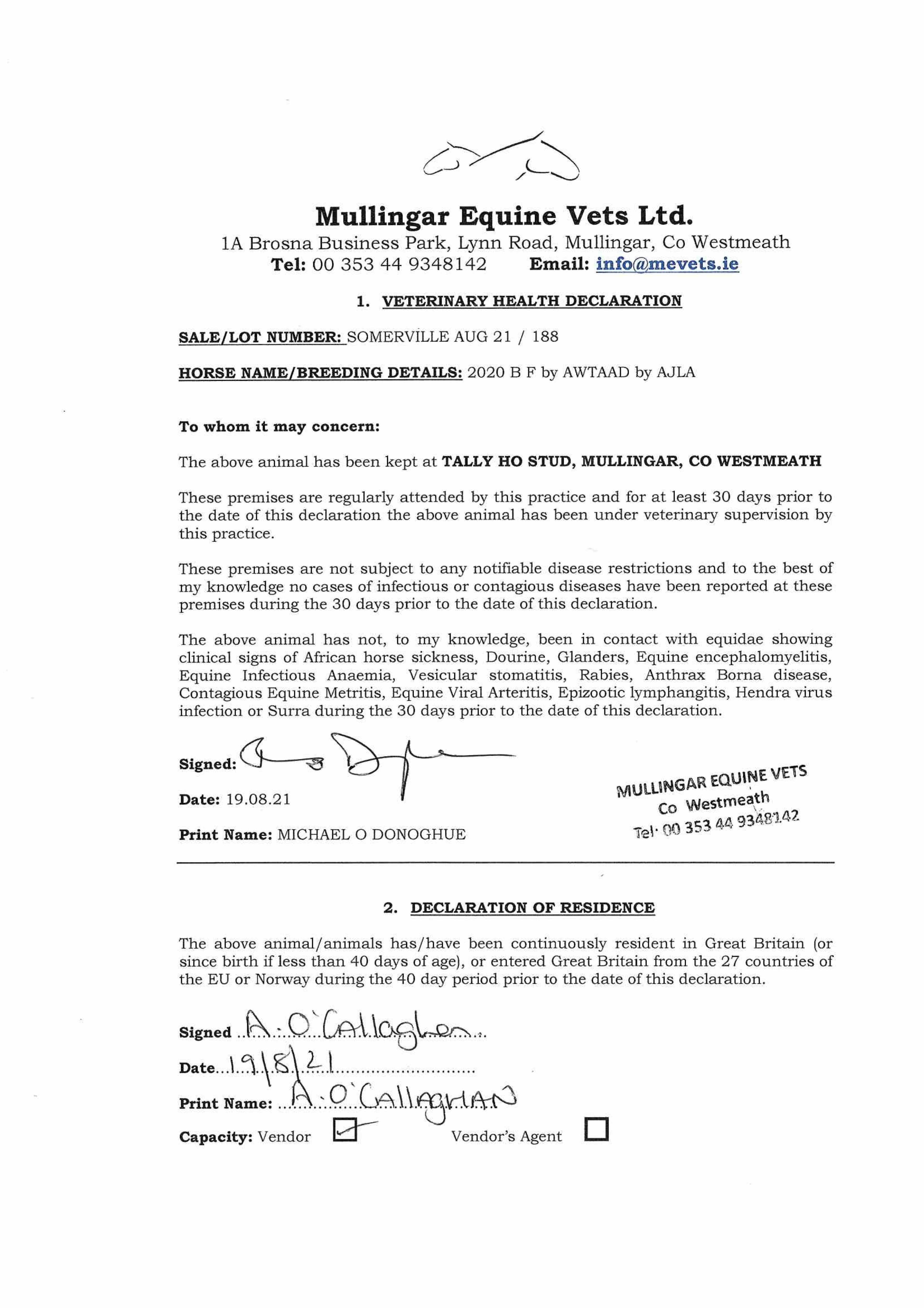 Consignor: Tally-Ho Stud, Ireland