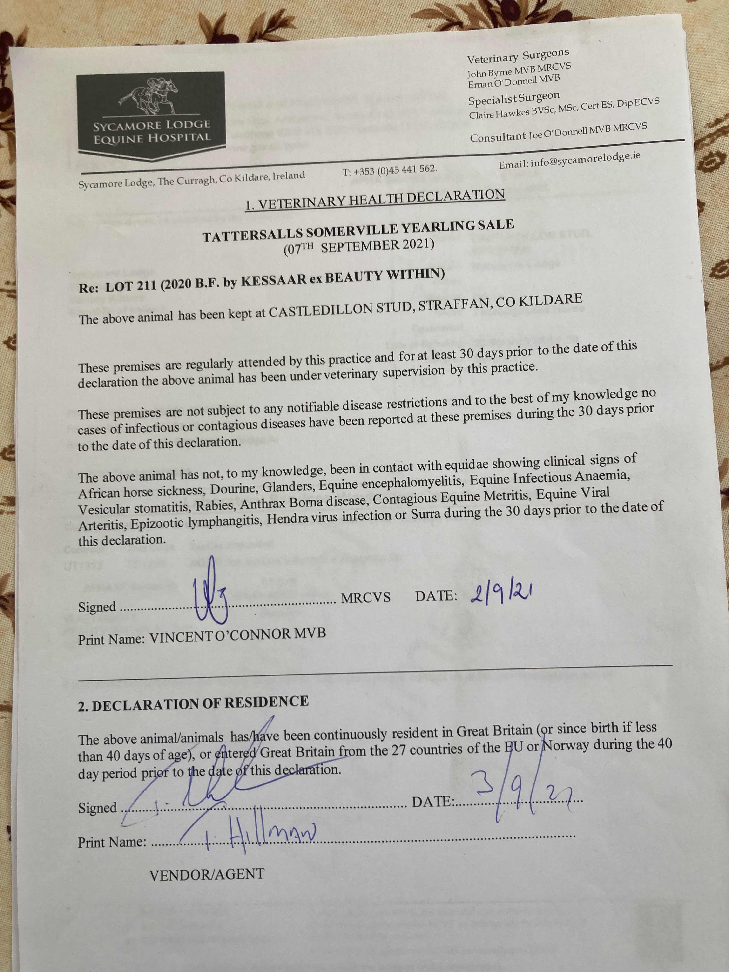 September Yearling Sale 2020 lot 45 F. by Cable Bay (IRE) 2019, Castledillon Stud (Agent)=>TJ Kent Racing £6,500
