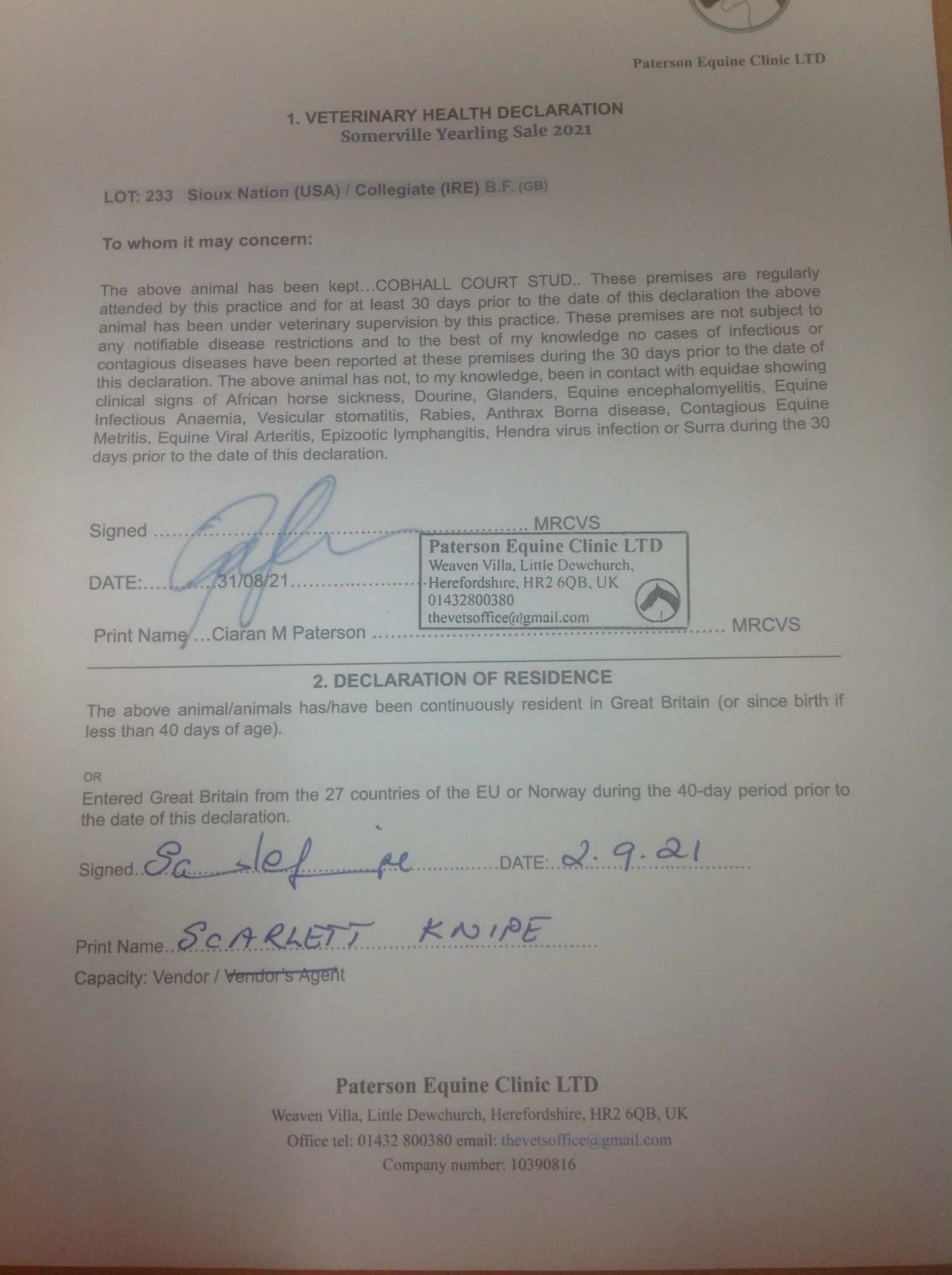 Consignor: Cobhall Court Stud