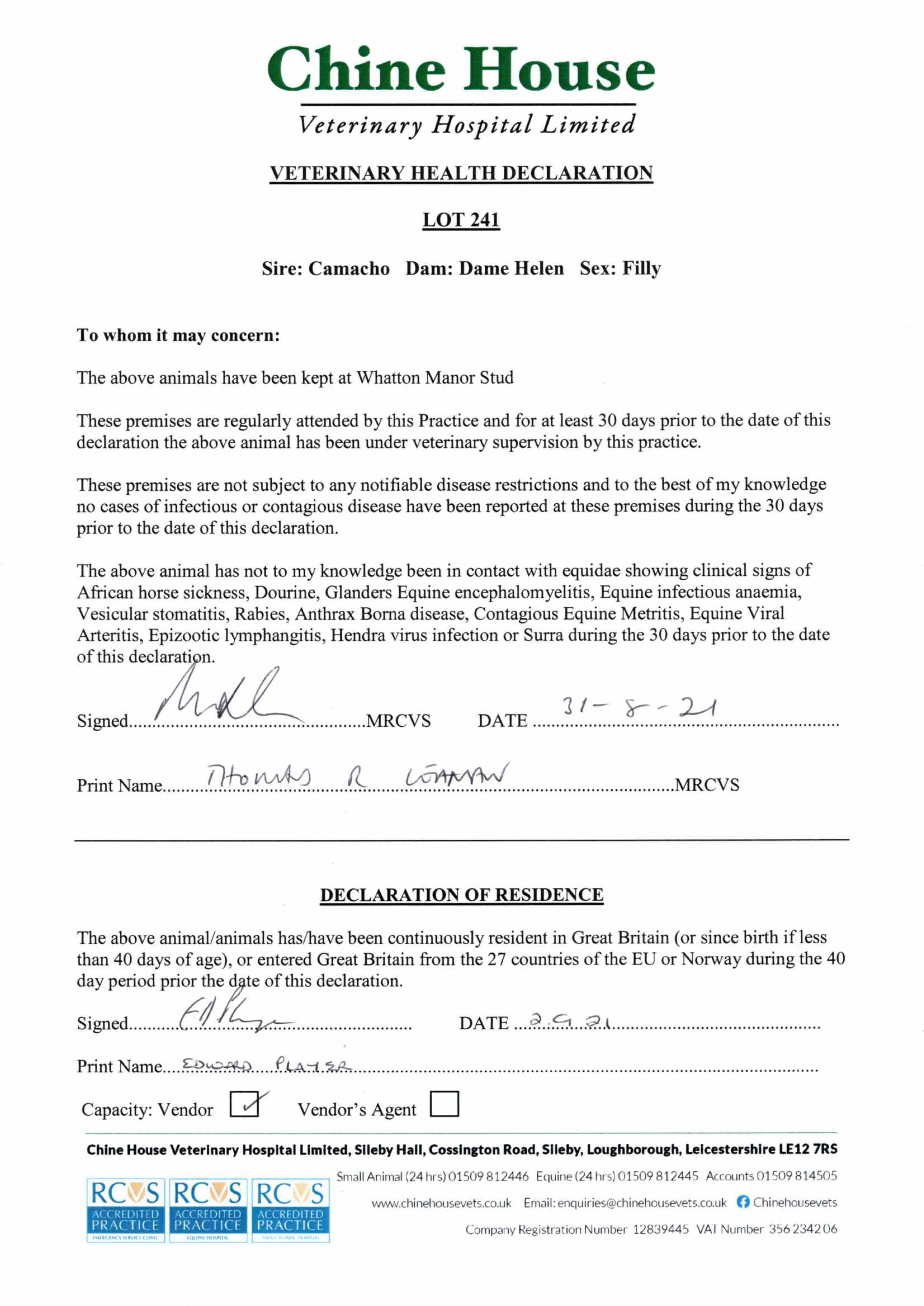 Consignor: Whatton Manor Stud