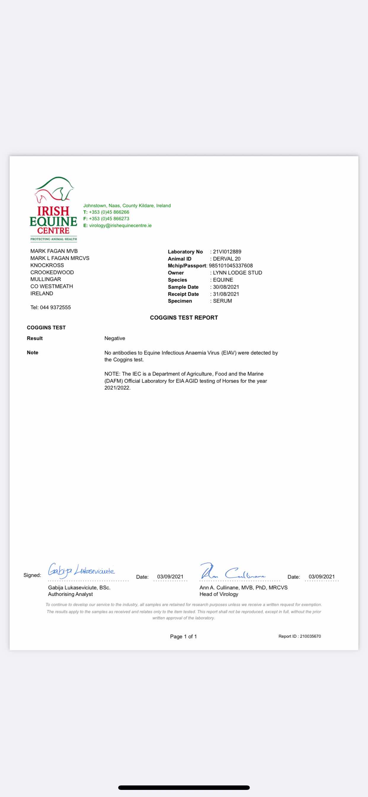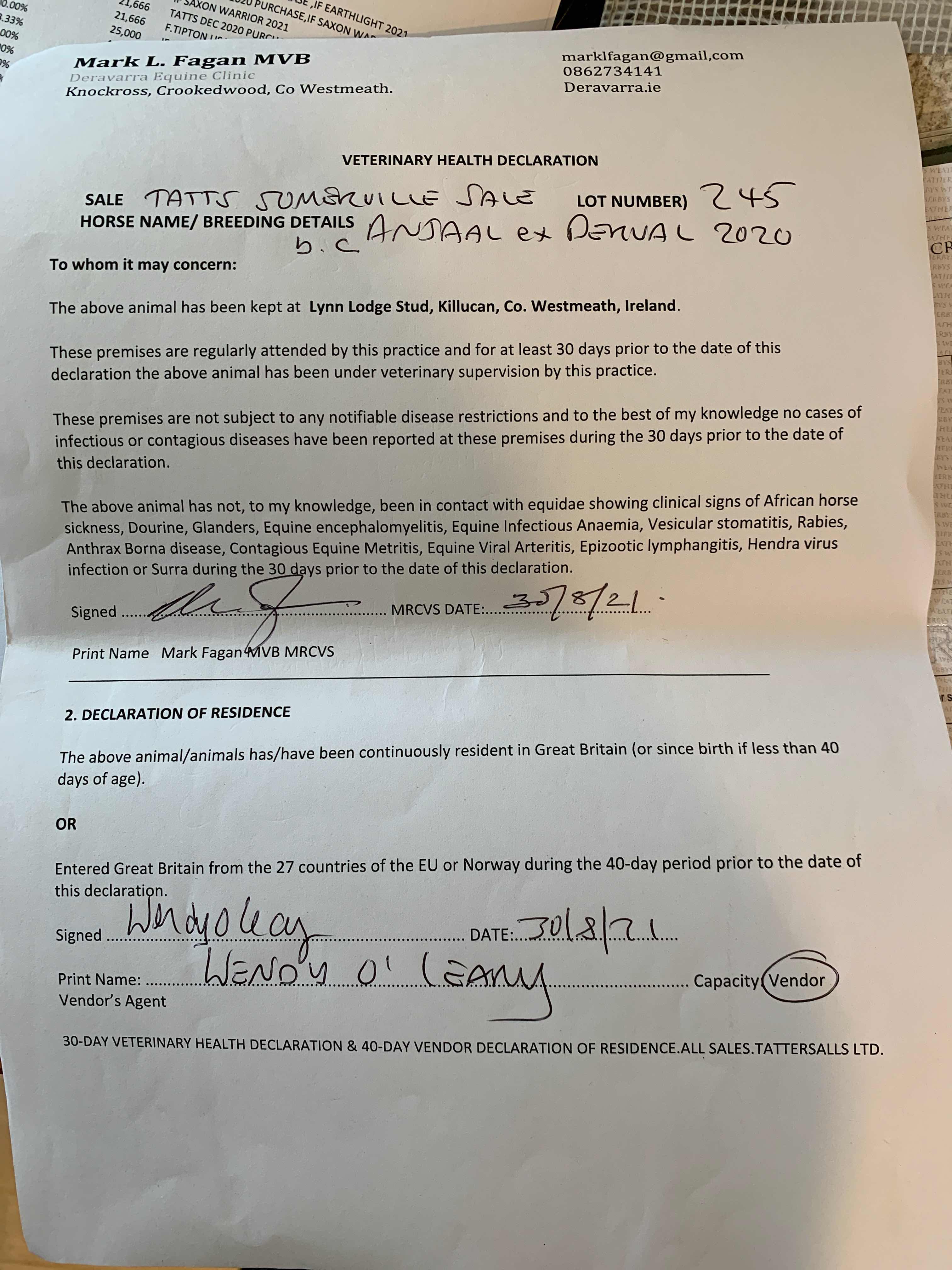 Consignor: Lynn Lodge Stud, Ireland