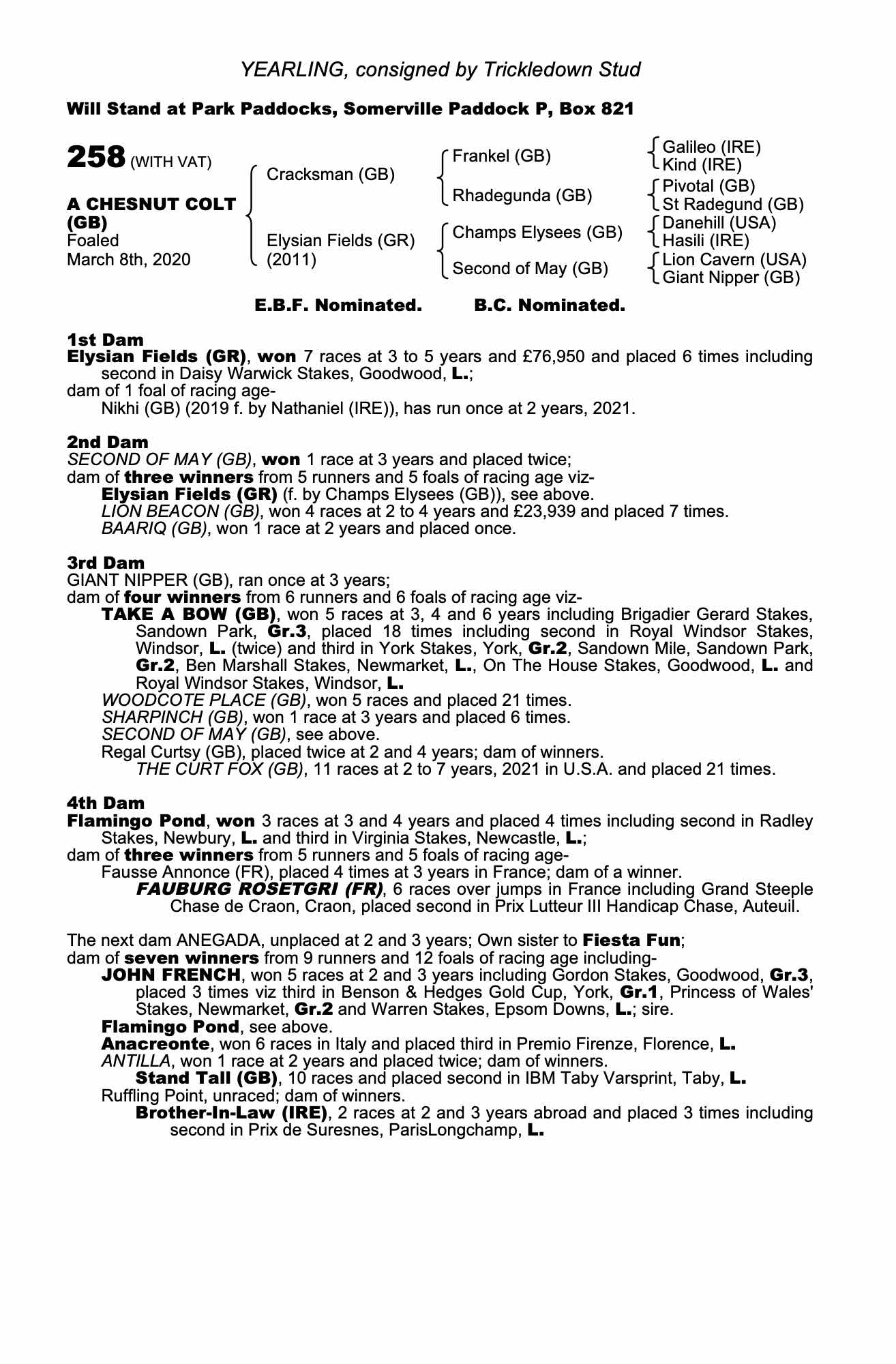 Friday 13 August:  Half-sister Nikhi (GB), placed once at 2 years, 2021, from only 2 starts.