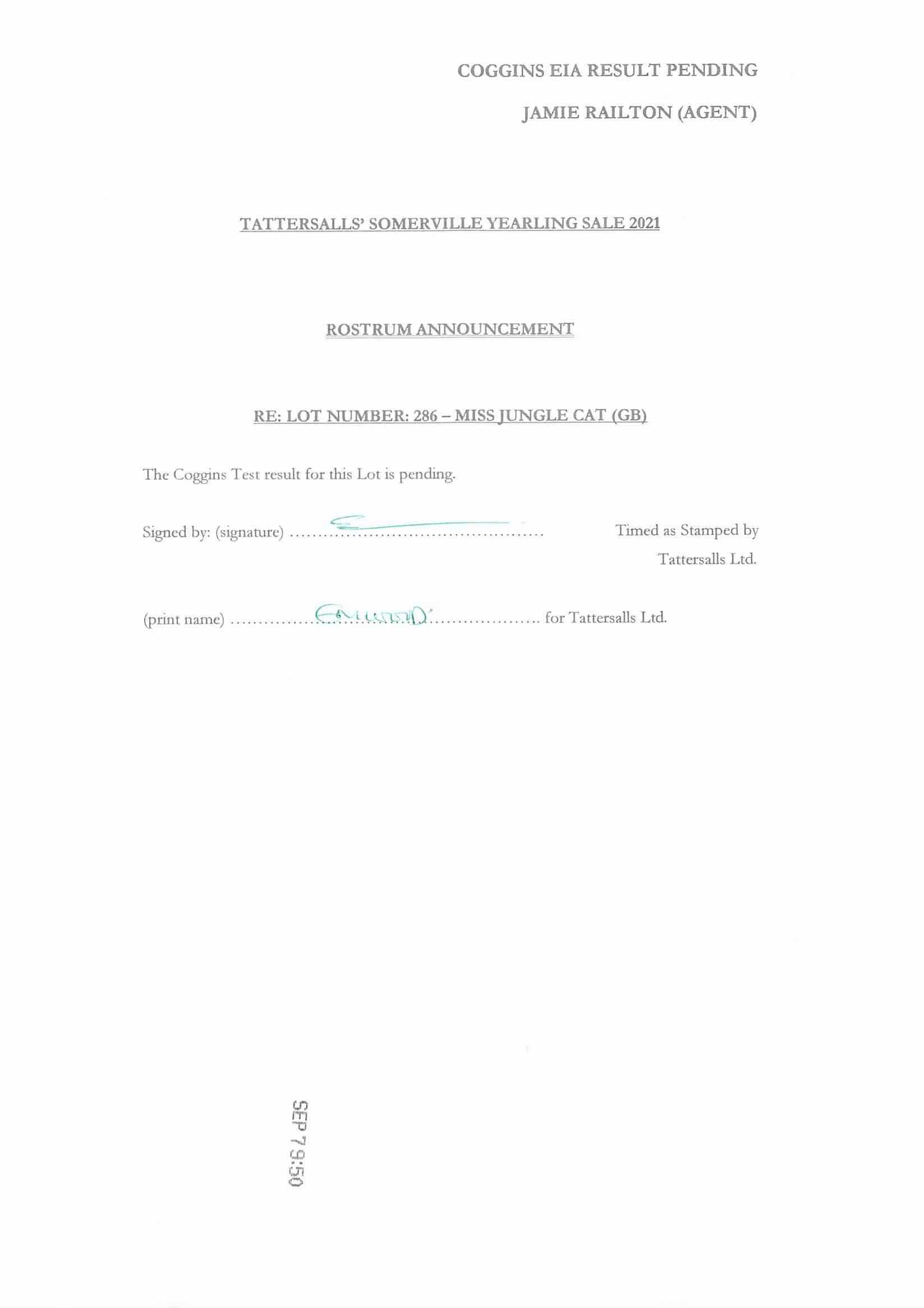 Consignor: Jamie Railton (Agent)