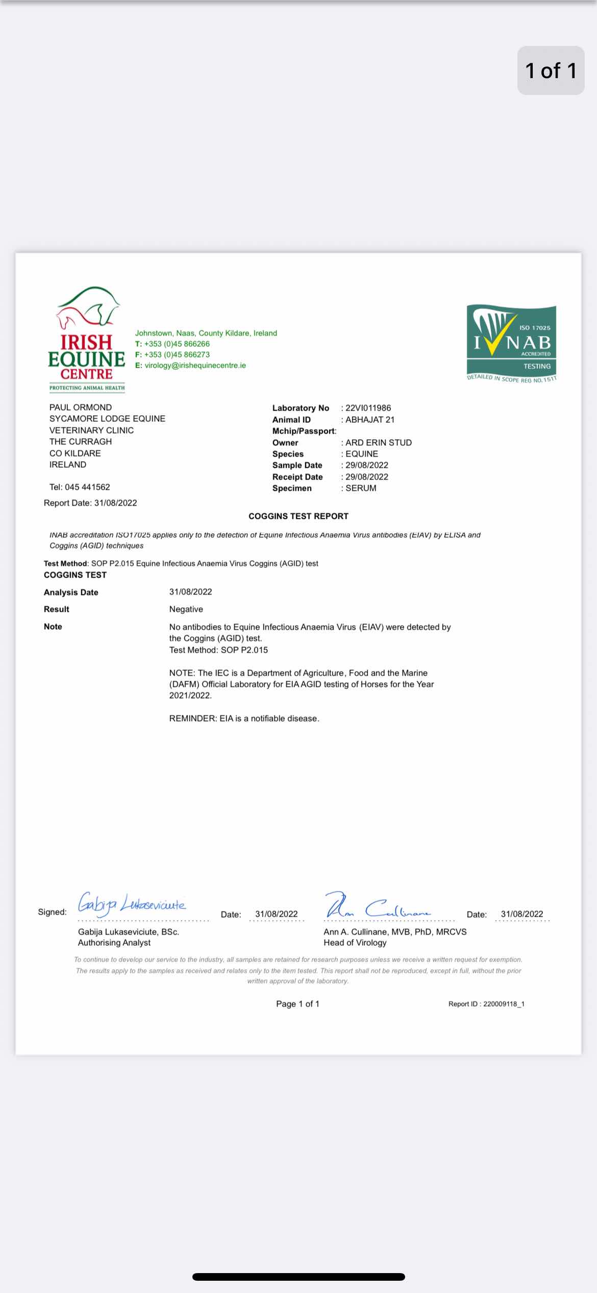 Consignor: Ard Erin Stud, Ireland