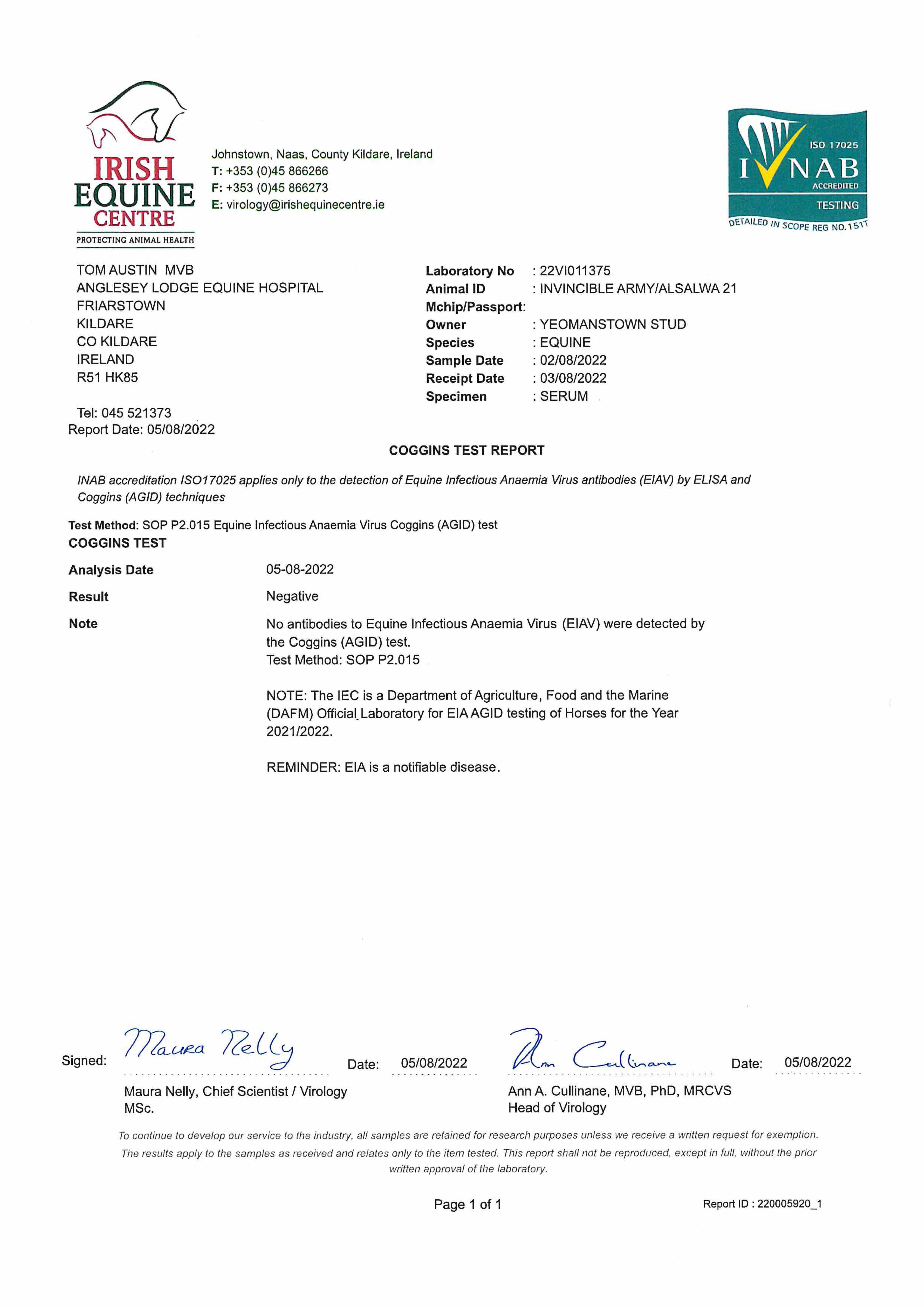 Consignor: Yeomanstown Stud, Ireland