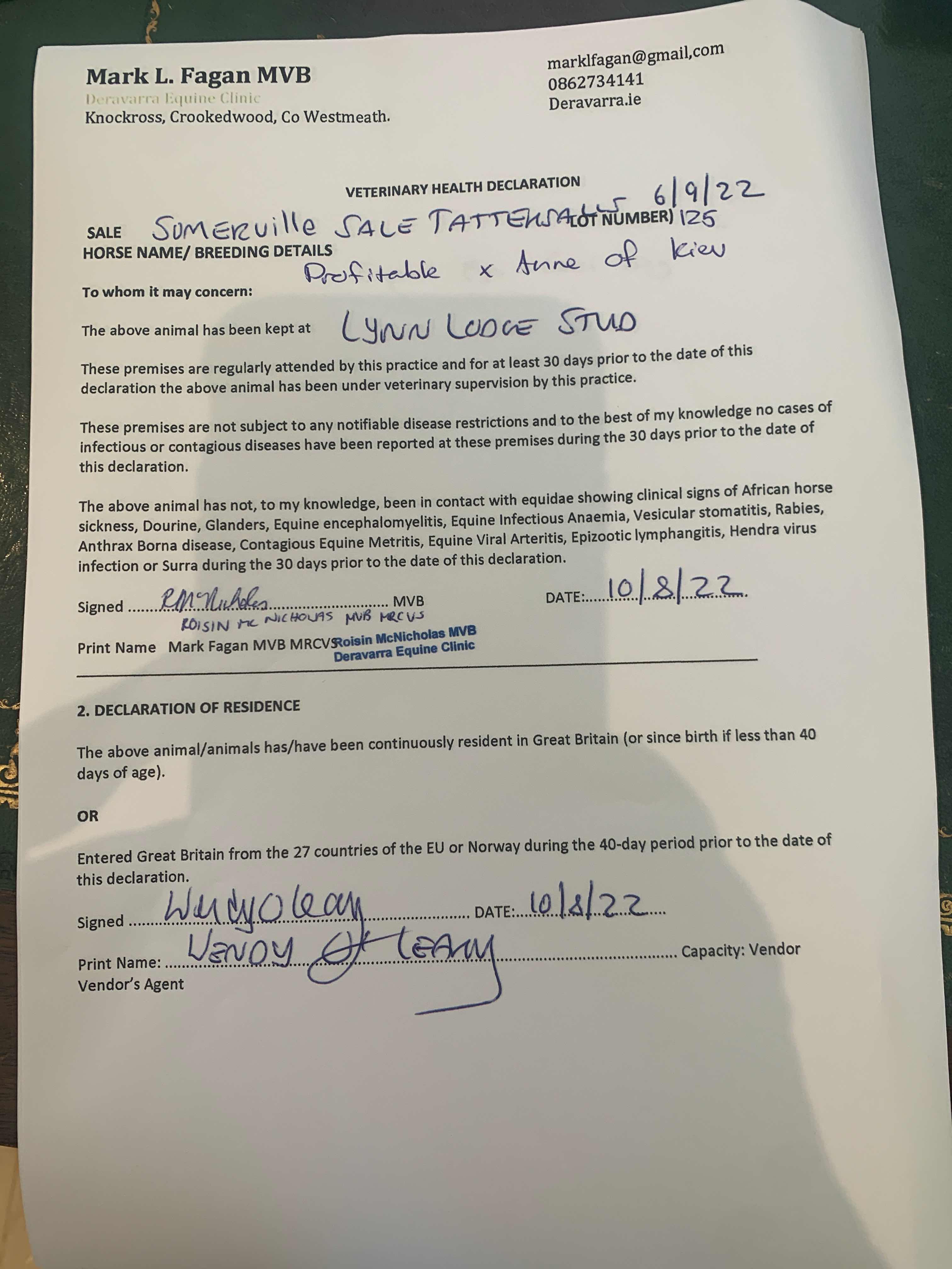 Consignor: Lynn Lodge Stud, Ireland