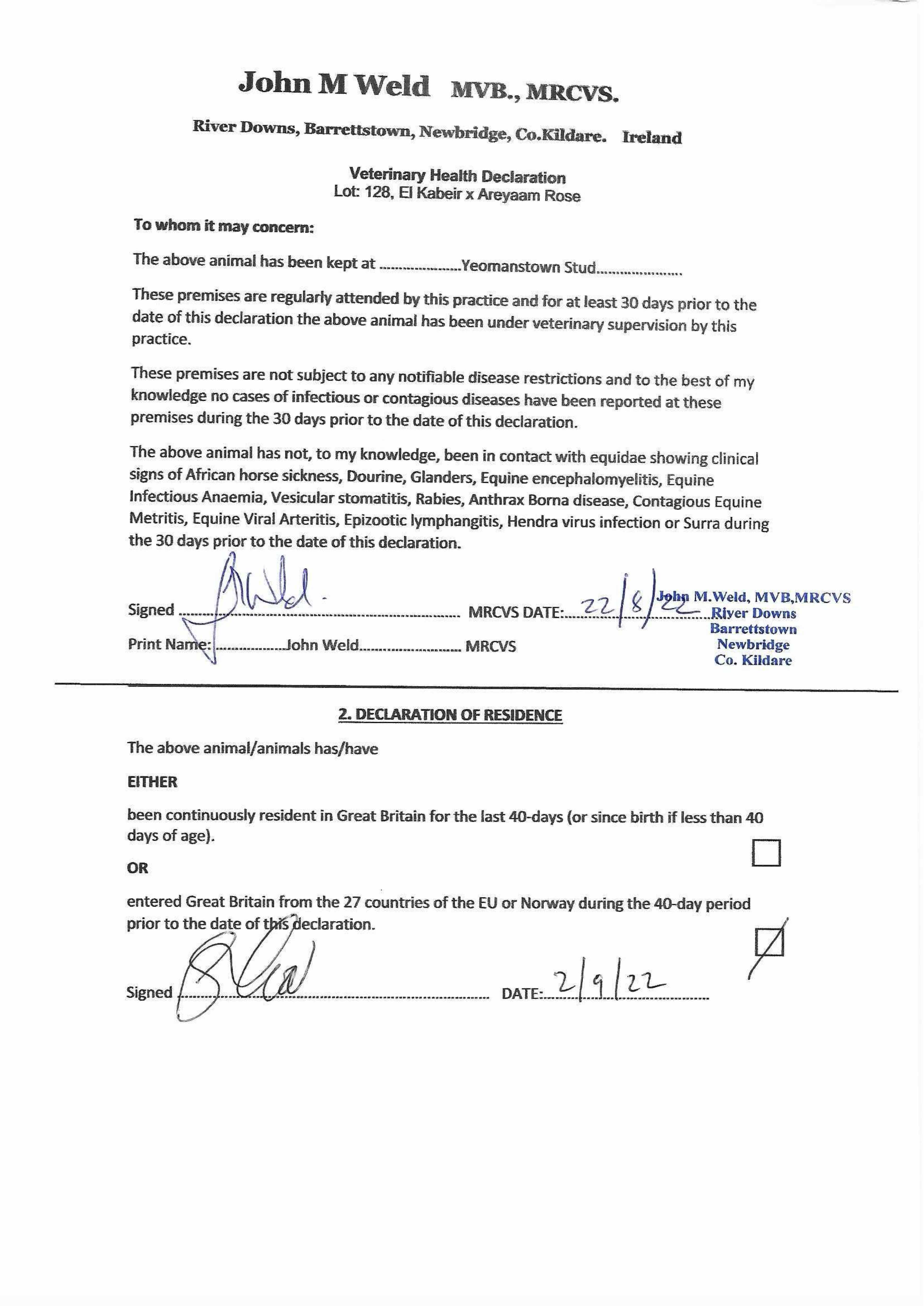 Consignor: Yeomanstown Stud, Ireland