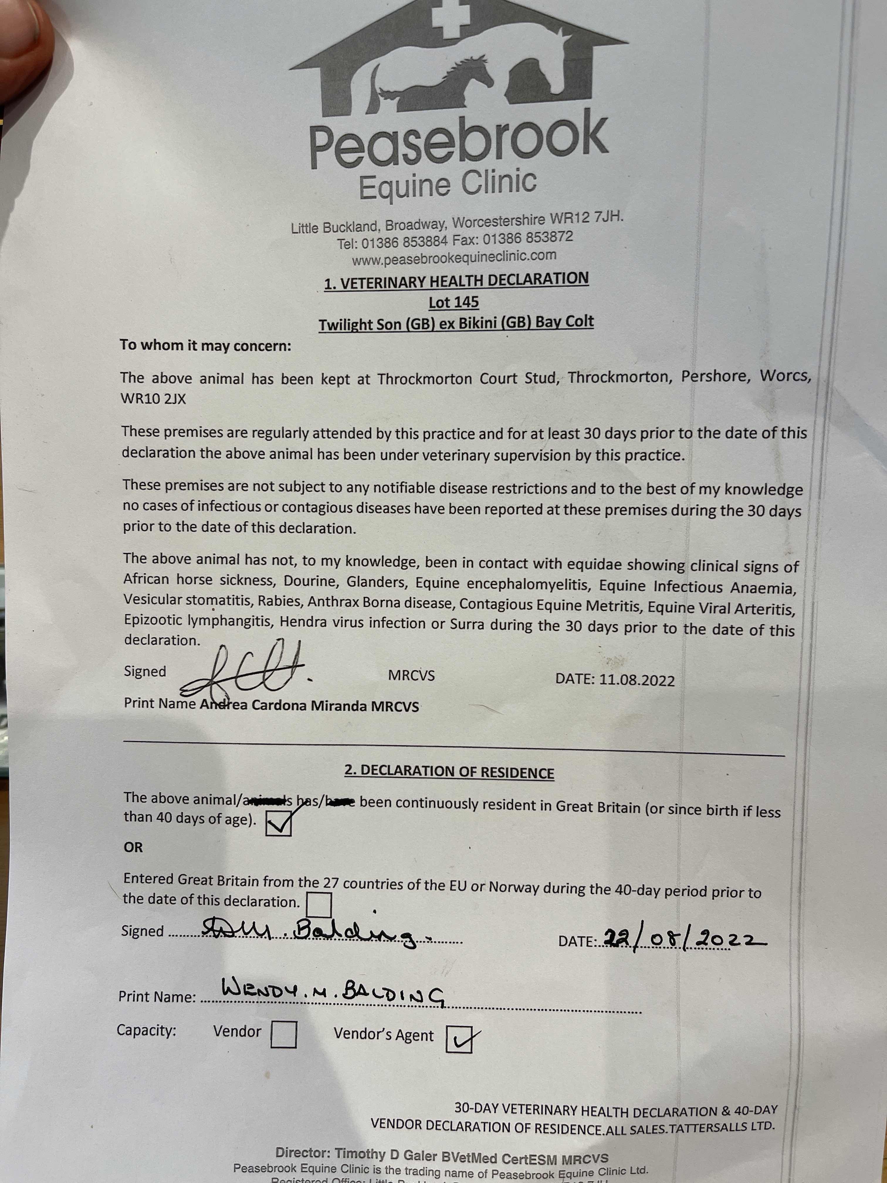Somerville Yearling Sale 2023 lot 58 C. by Ardad (IRE) 2022, Throckmorton Court Stud=>Finbar Kent Bloodstock 18,000 gns