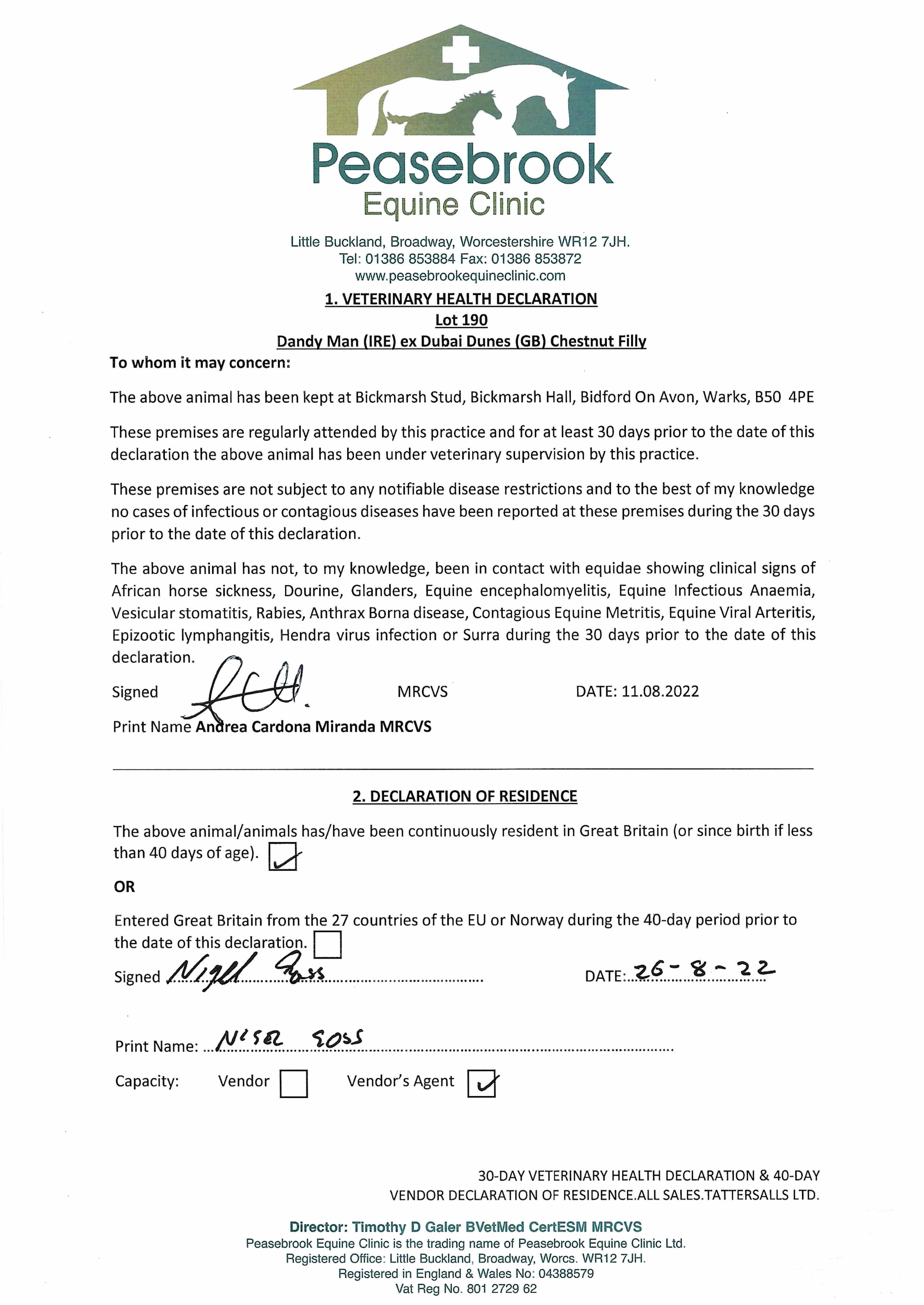 Consignor: Bickmarsh Stud