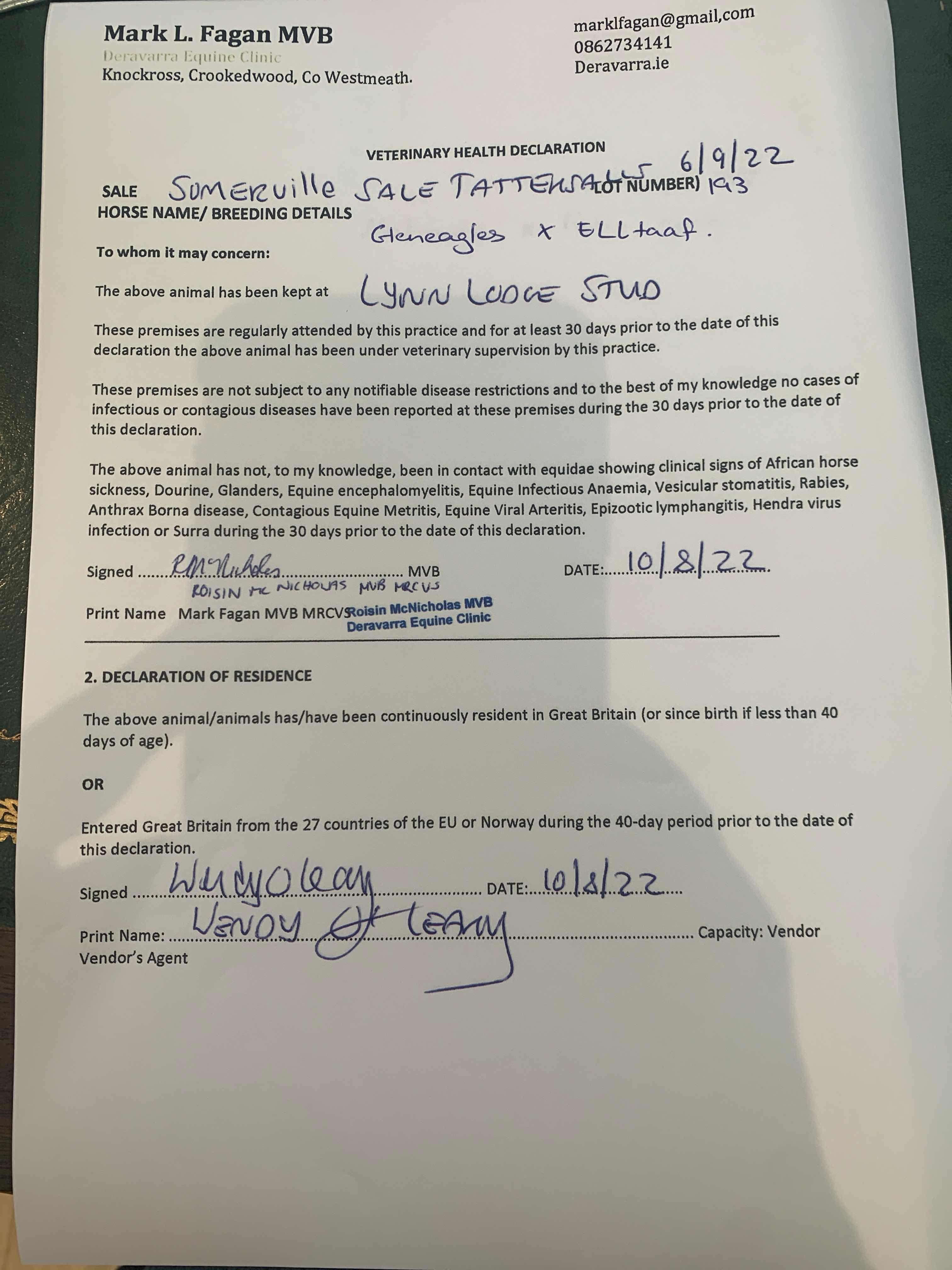 Consignor: Lynn Lodge Stud, Ireland