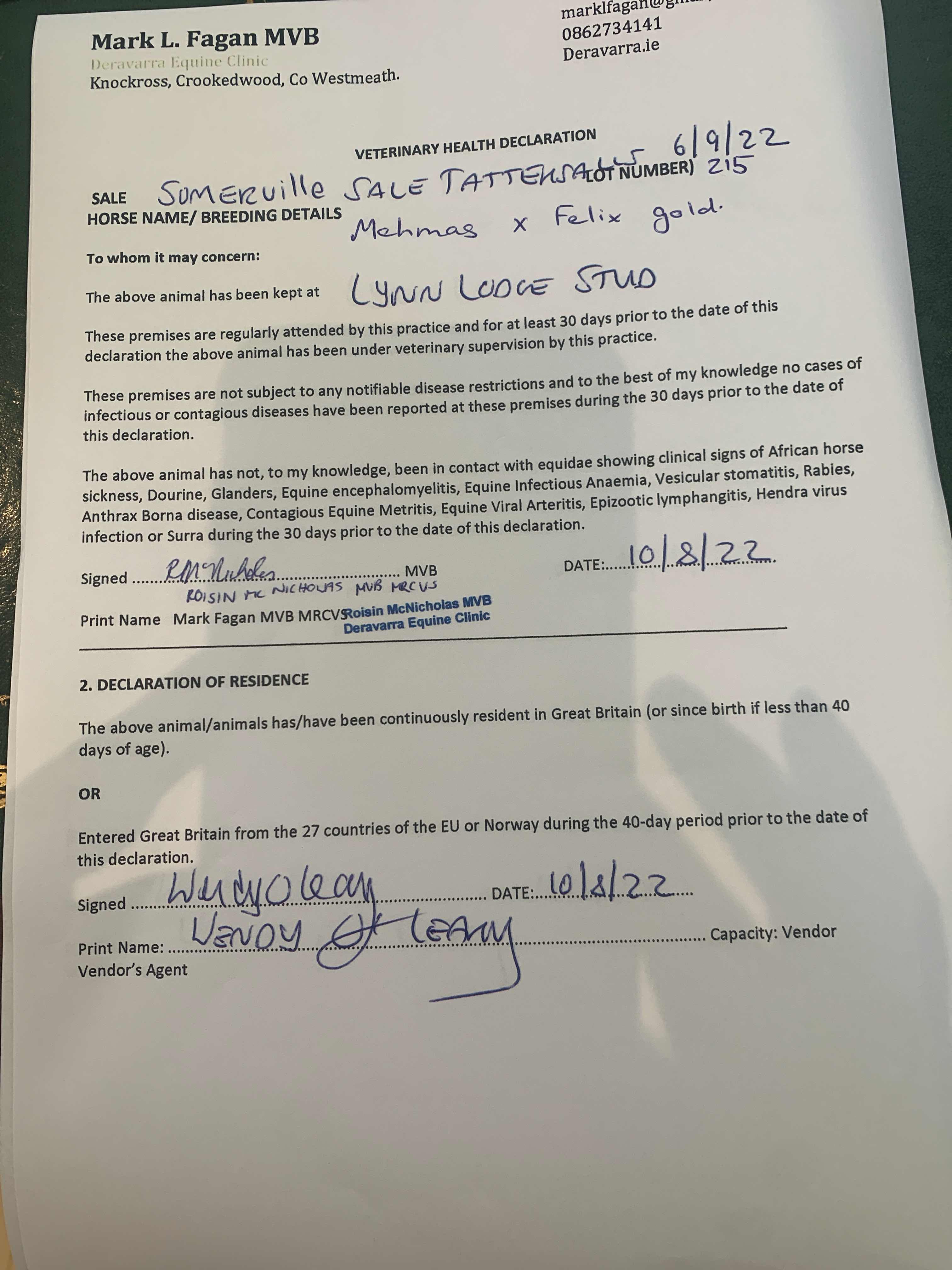 Somerville Yearling Sale 2024 lot 135 F. by Coulsty (IRE) 2023, Lynn Lodge Stud, Ireland=>Stanley Moore 10,000 gns