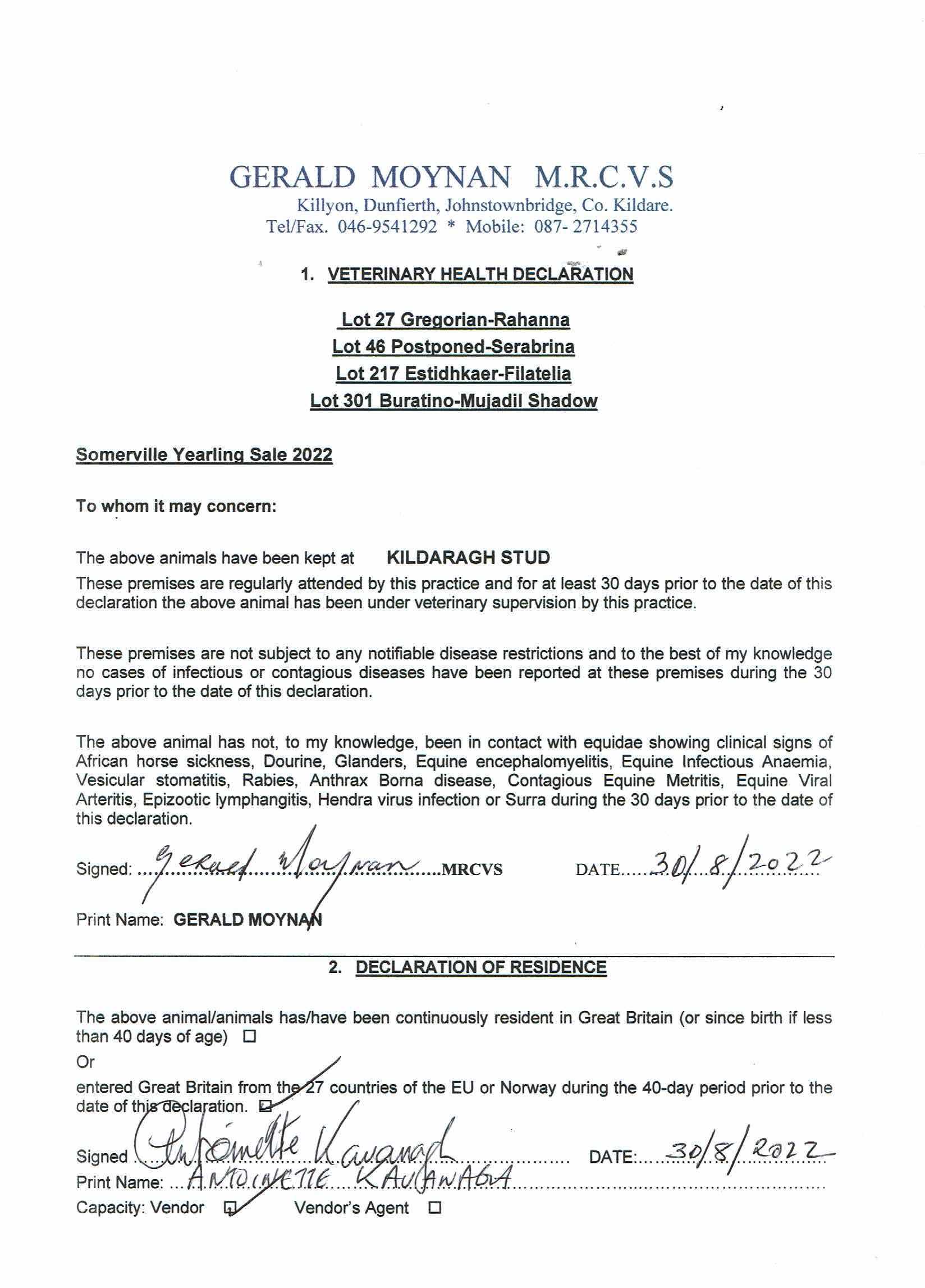 Consignor: Kildaragh Stud, Ireland (Agent)