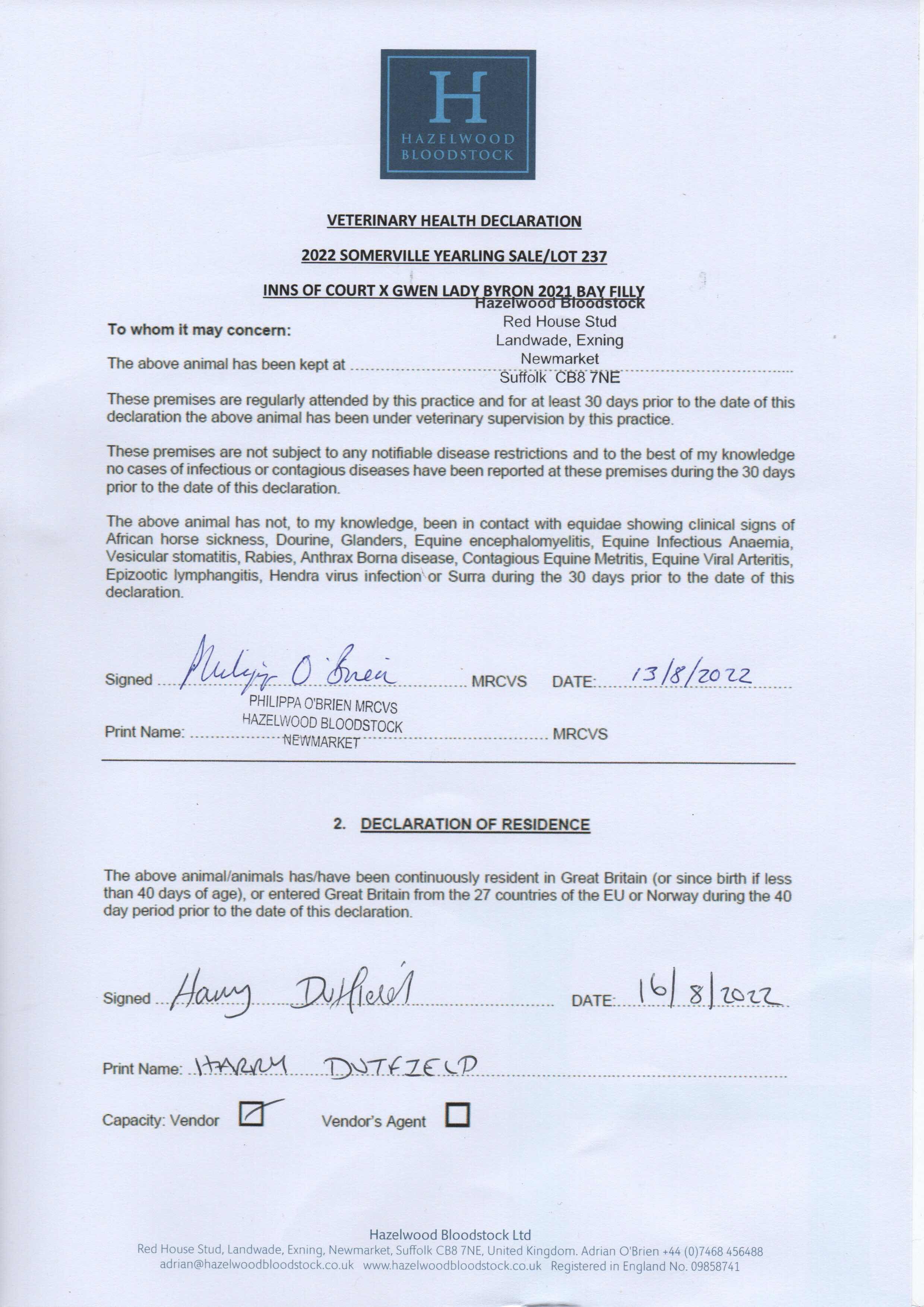 August Sale 2023 lot 49, Dullingham Park=>Gay And Sarah Kelleway 2,000 gns