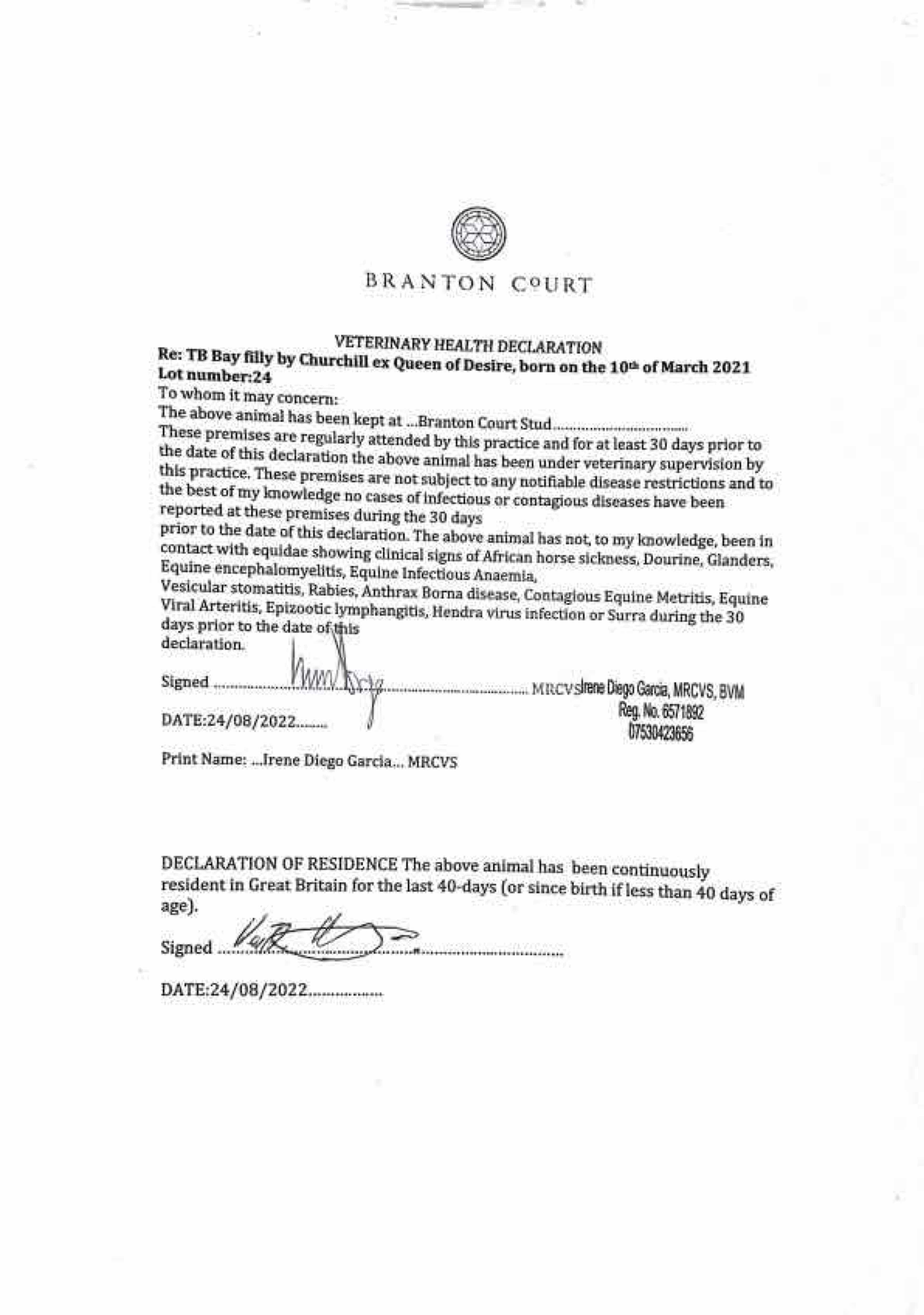 Somerville Yearling Sale 2023 lot 270 F. by Advertise (GB) 2022, Dullingham Park=>Paul Cairns Racing 26,000 gns