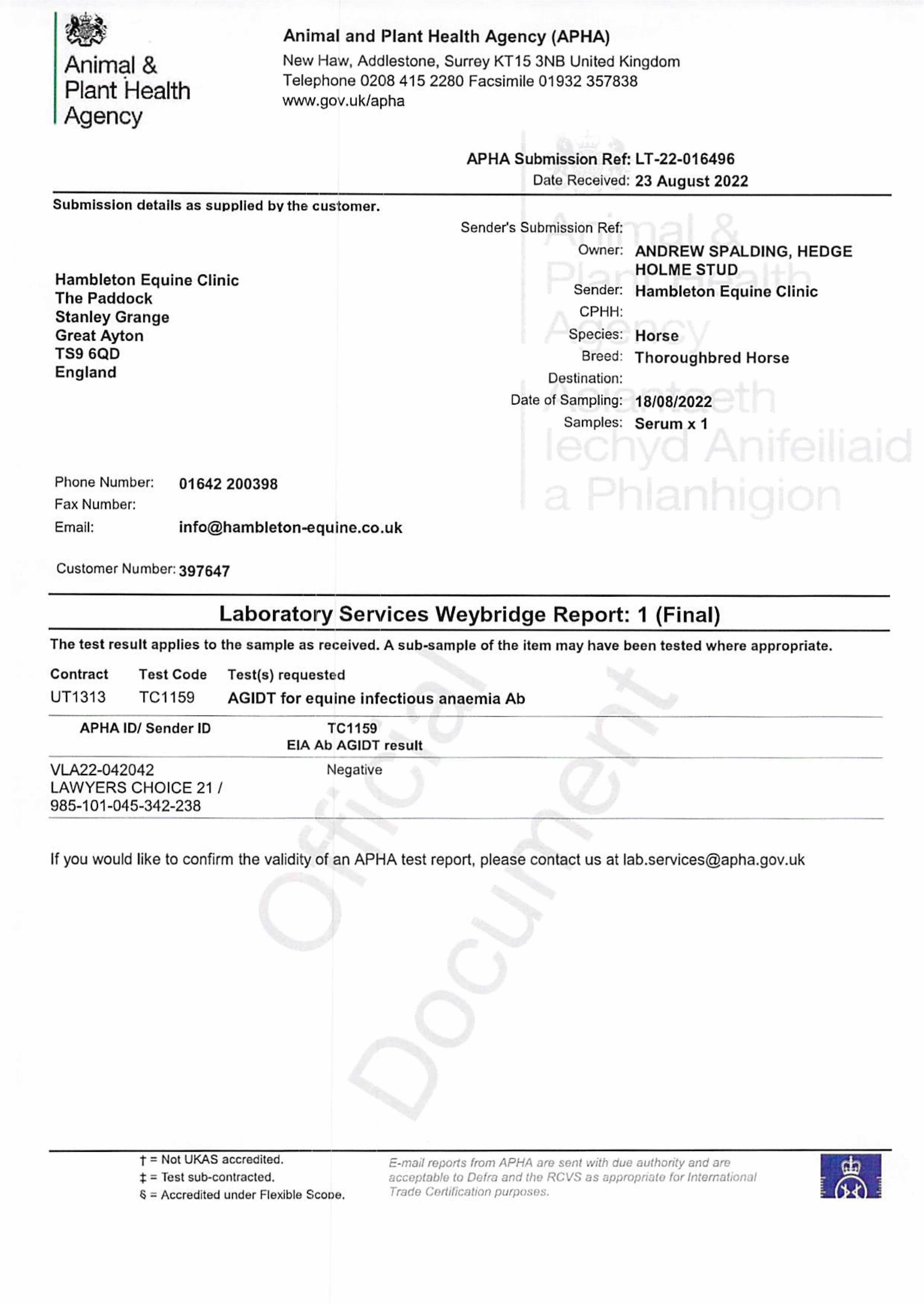 Consignor: Hedgeholme Stud