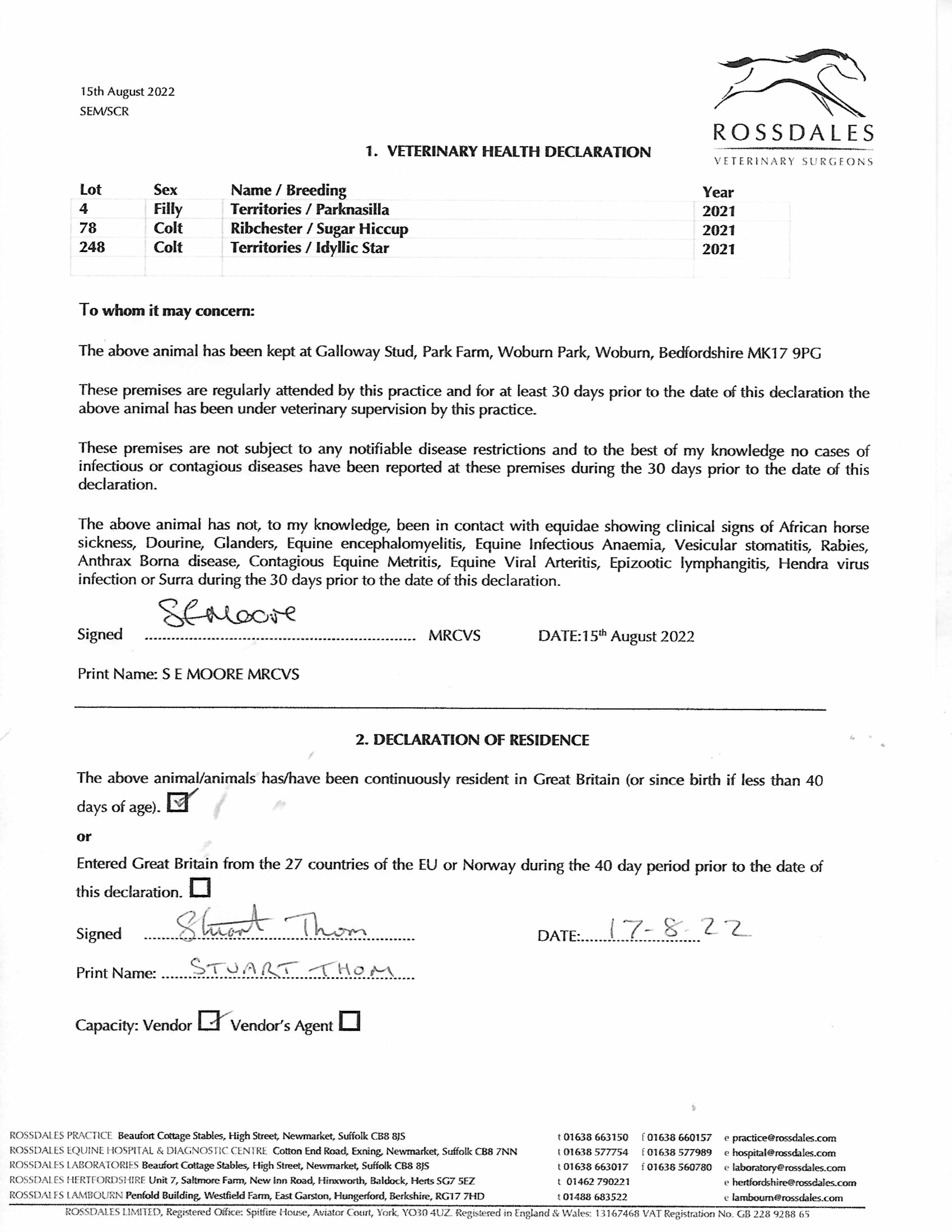 Consignor: Galloway Stud