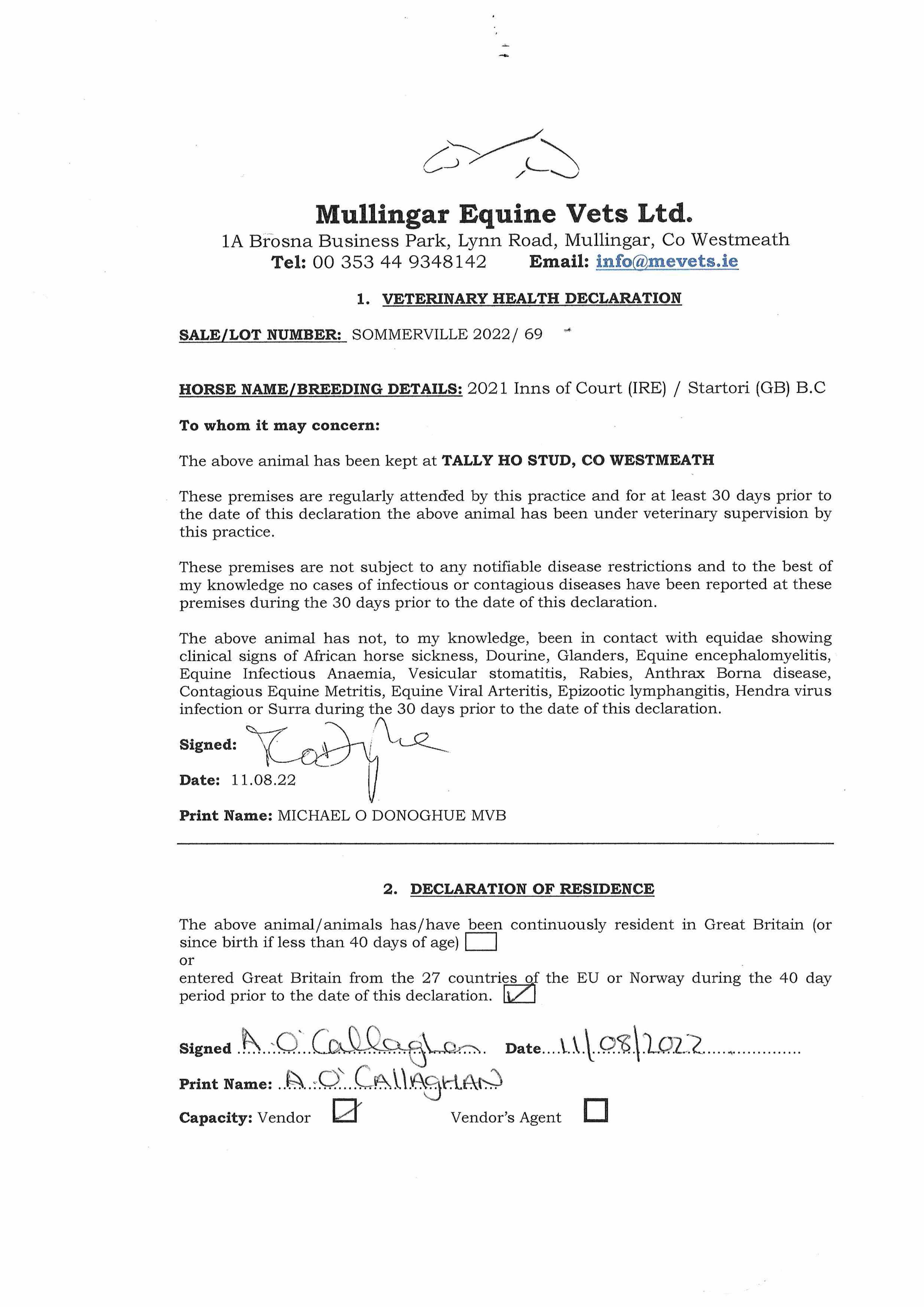 Somerville Yearling Sale 2021 lot 133 F. by Mehmas (IRE) 2020, Tally-Ho Stud, Ireland=>Peter & Ross Doyle Bloodstock 50,000 gns