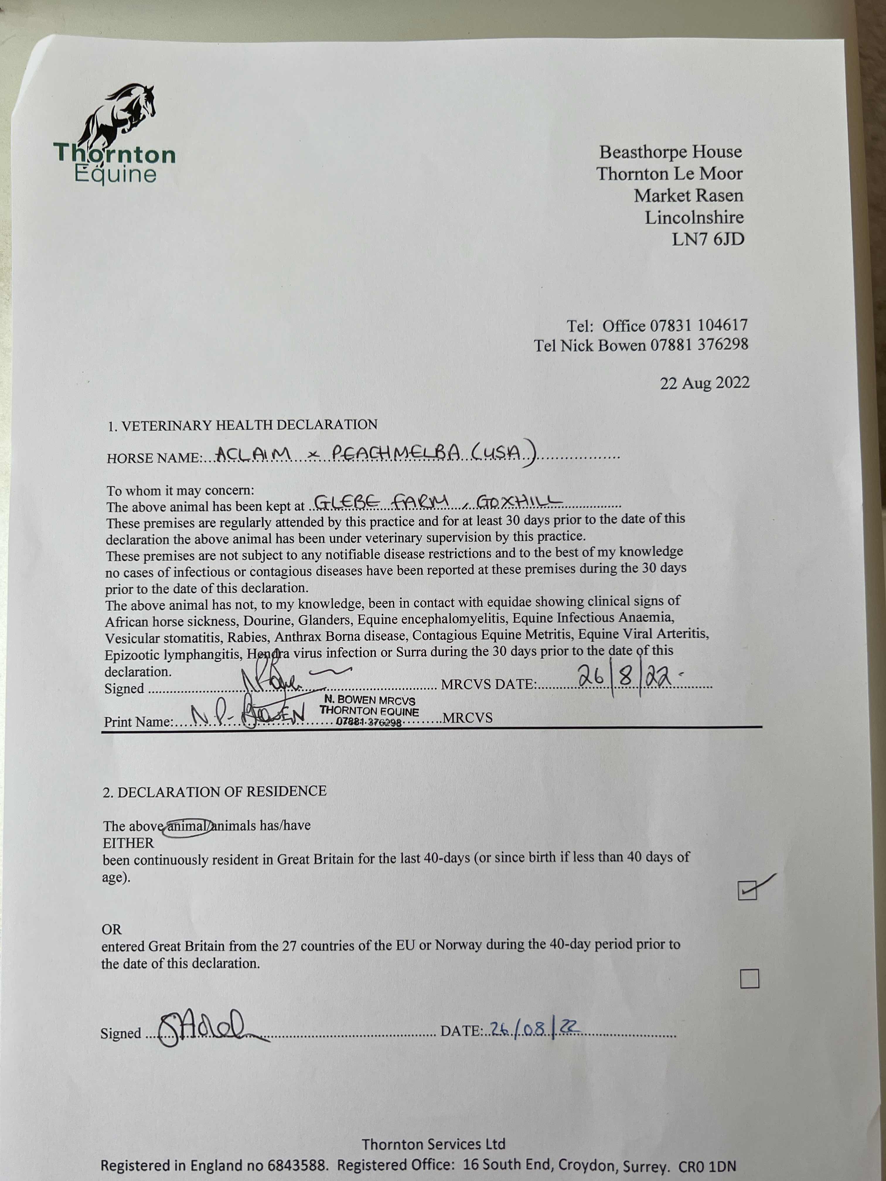 Consignor: Glebe Farm Stables