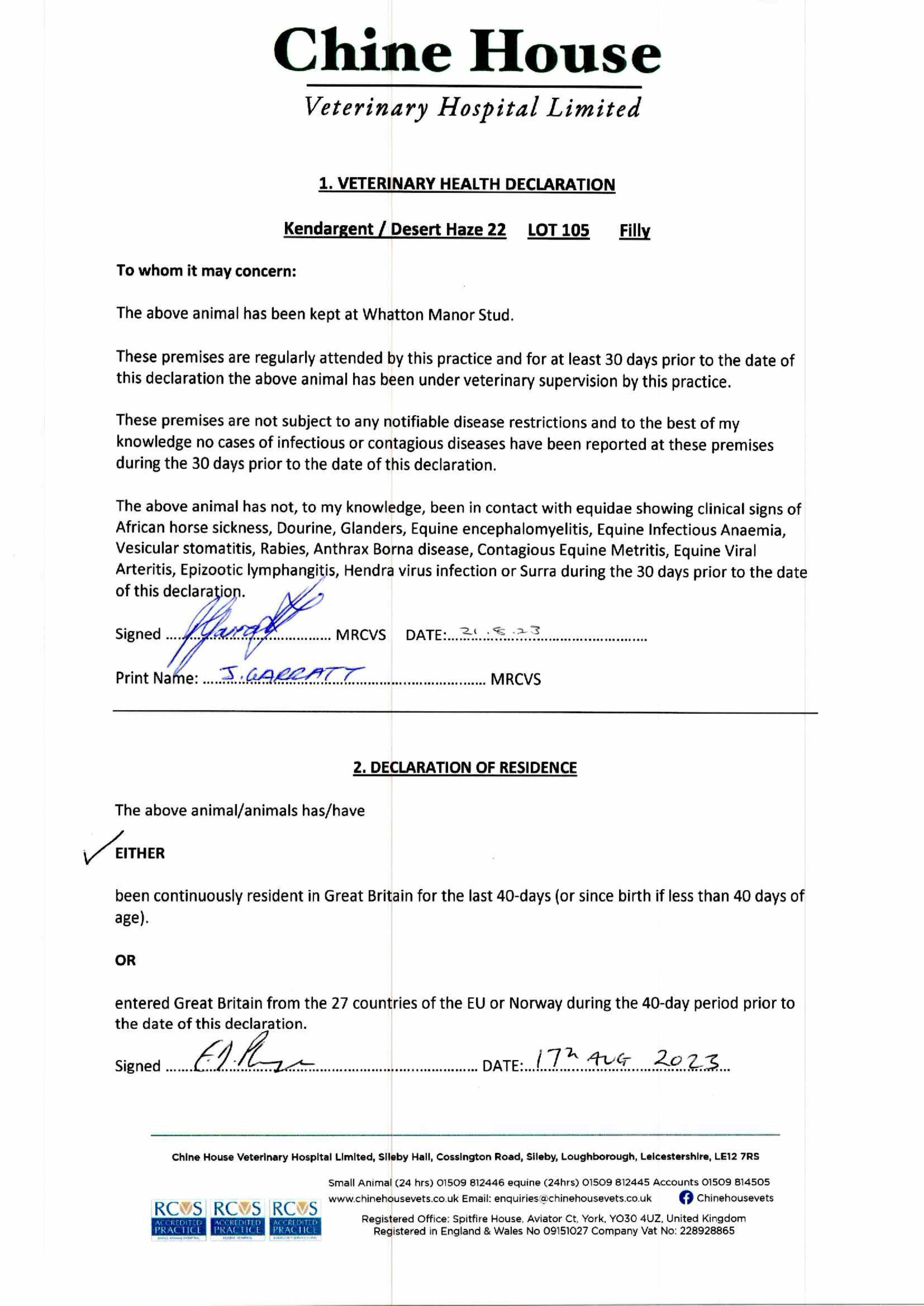 Consignor: Whatton Manor Stud