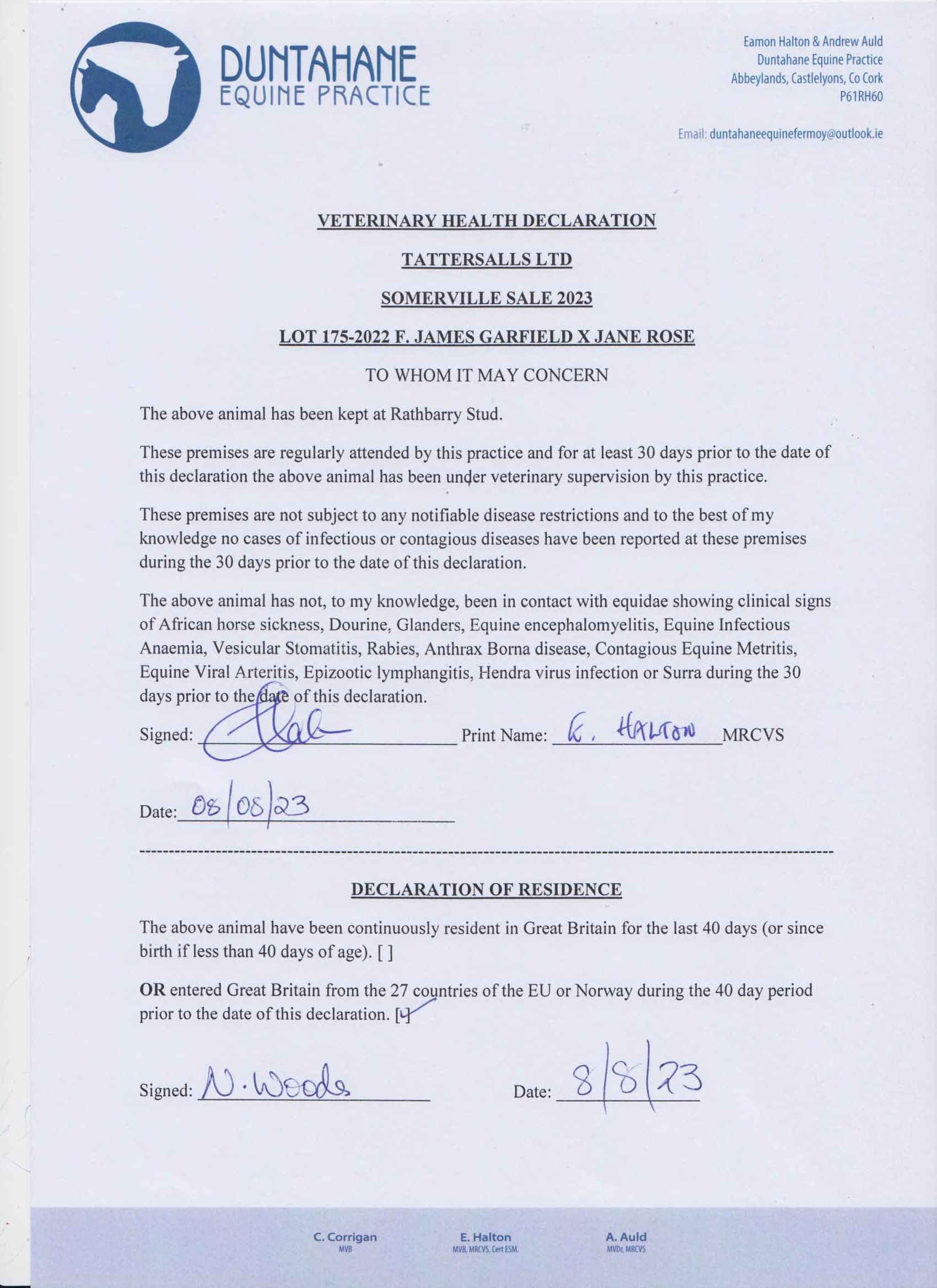 Consignor: Rathbarry Stud, Ireland
