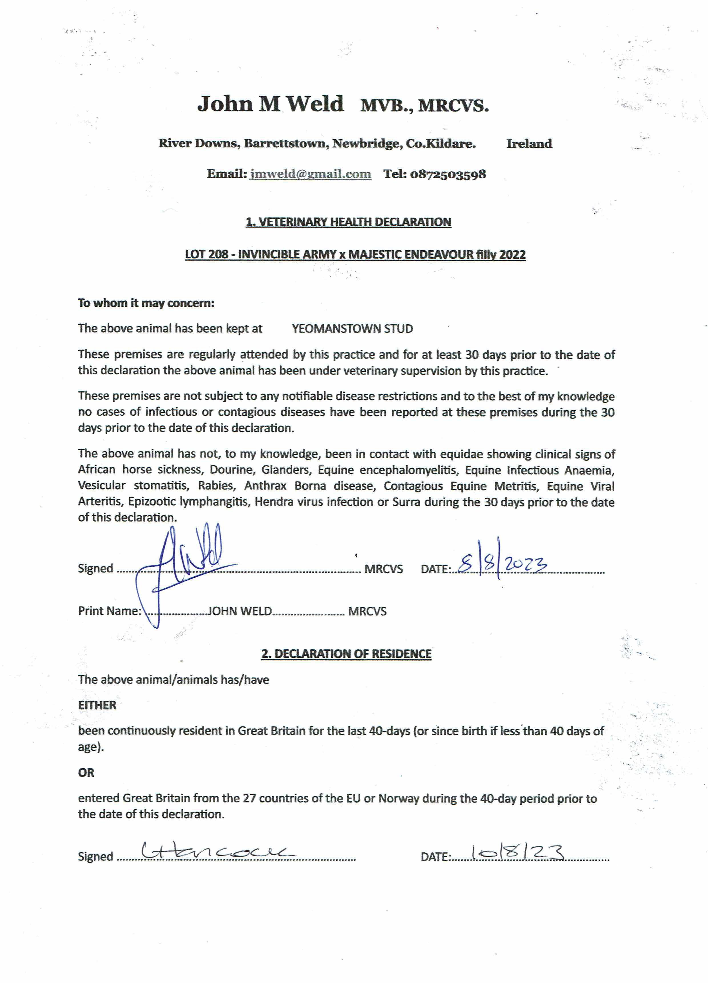 Consignor: Yeomanstown Stud, Ireland