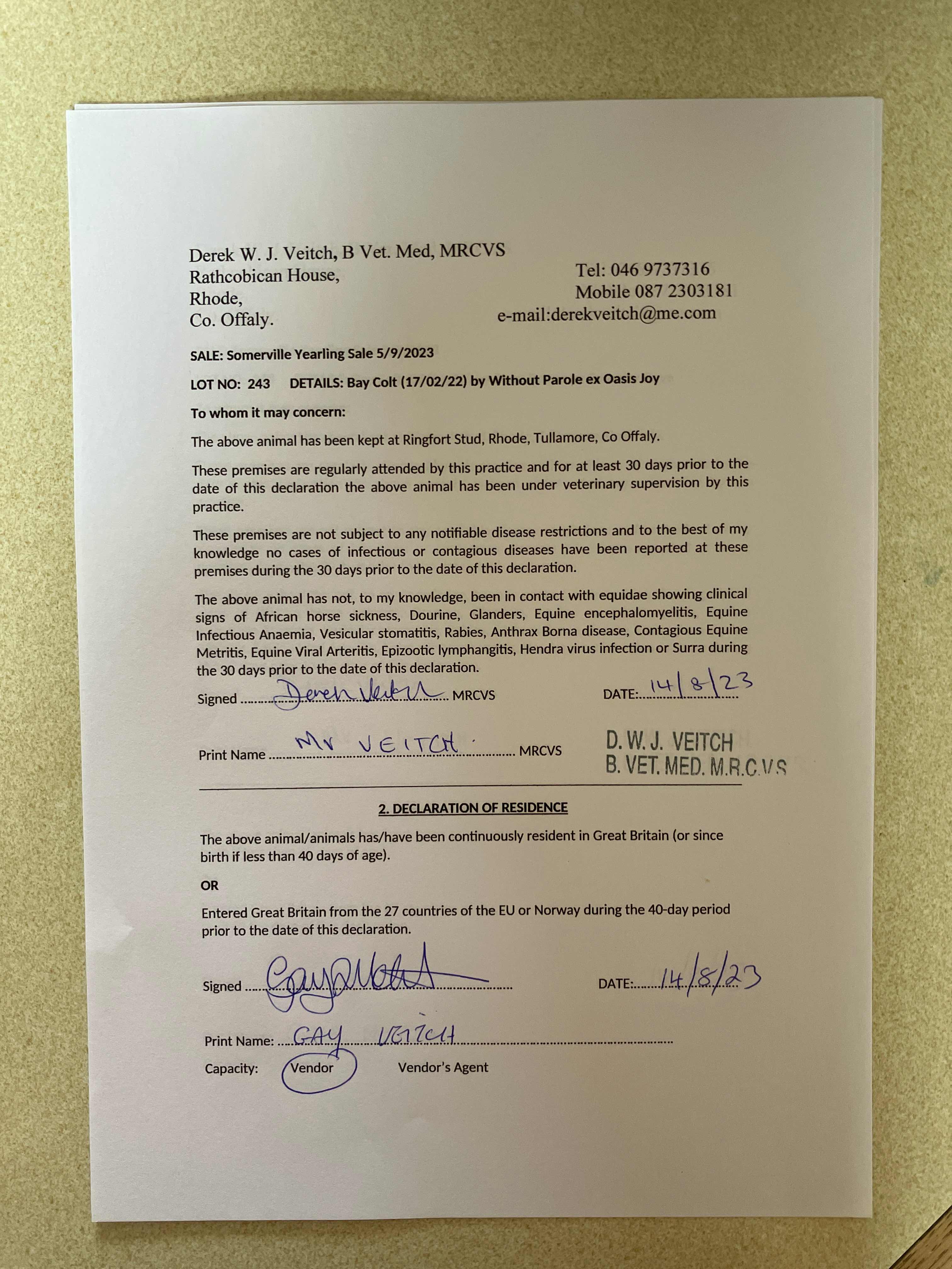 Online Sale - 21st November 2024 lot 117 C. by Waldgeist (GB) 2024, Ringfort Stud, Ireland=>Dan Astbury 1,200 gns