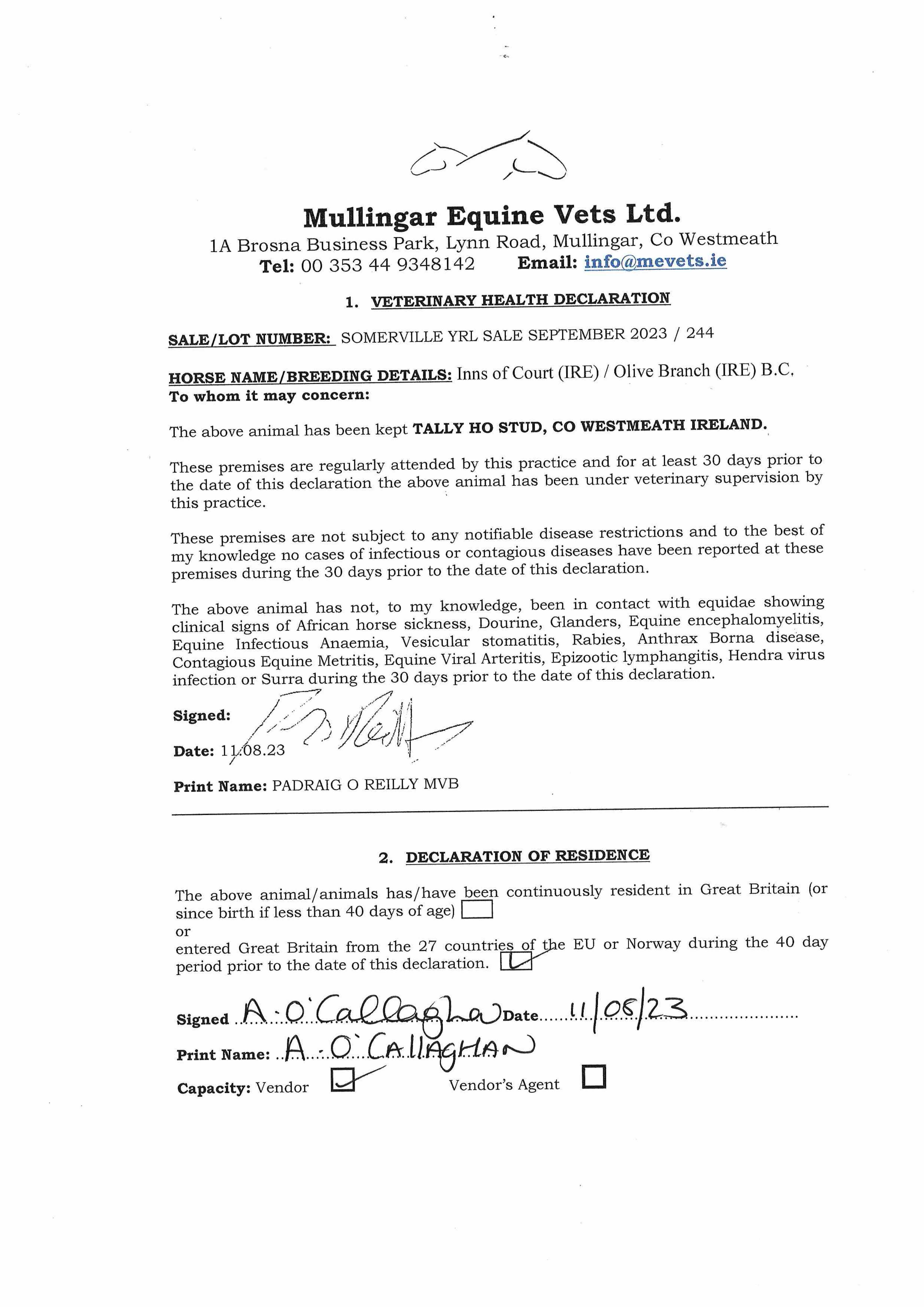 Consignor: Tally-Ho Stud, Ireland