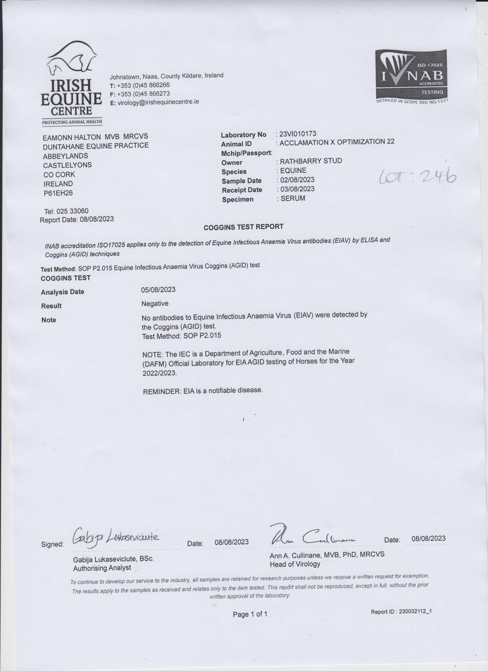 Consignor: Rathbarry Stud, Ireland
