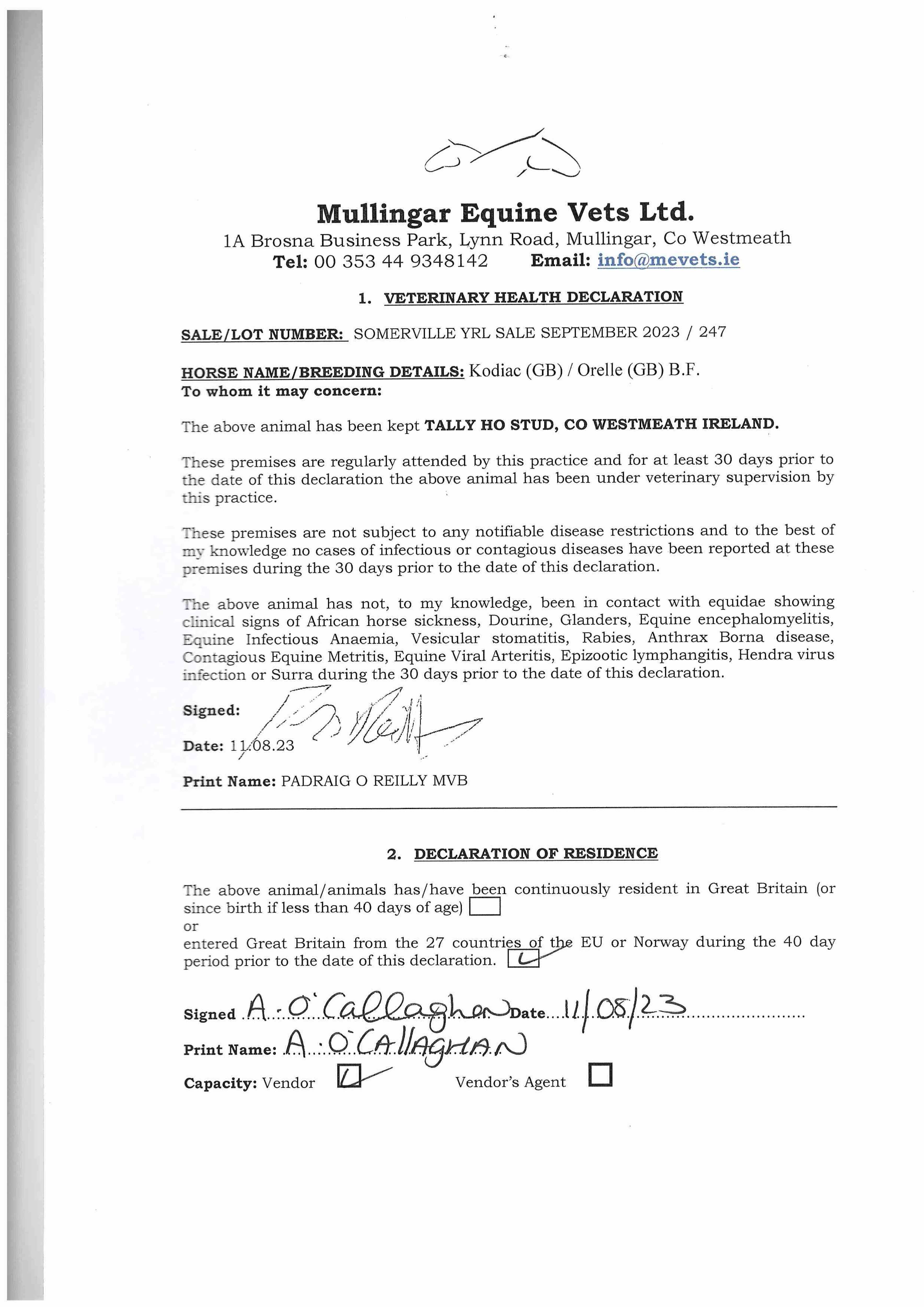 Consignor: Tally-Ho Stud, Ireland