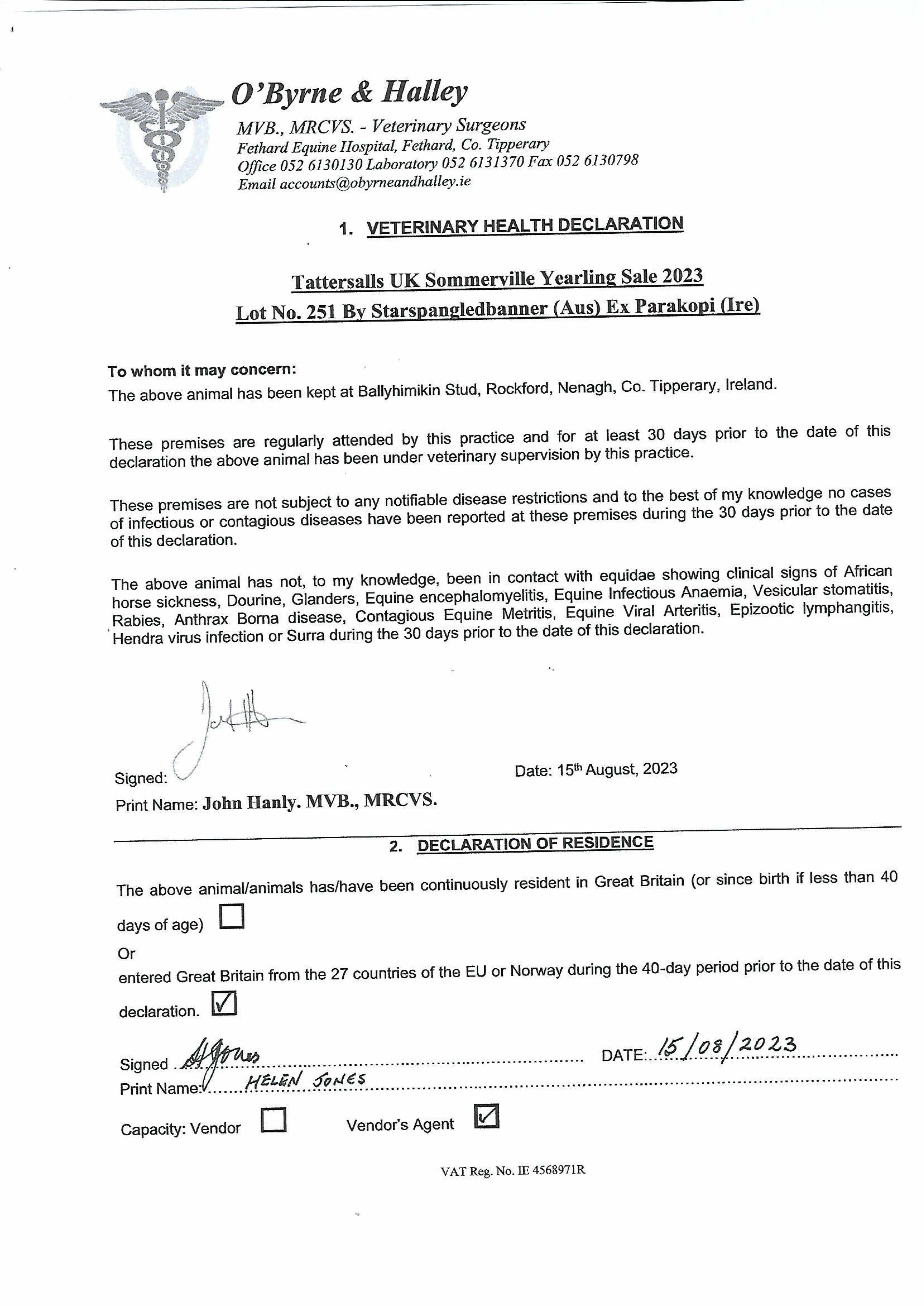 Consignor: Ballyhimikin Stud, Ireland