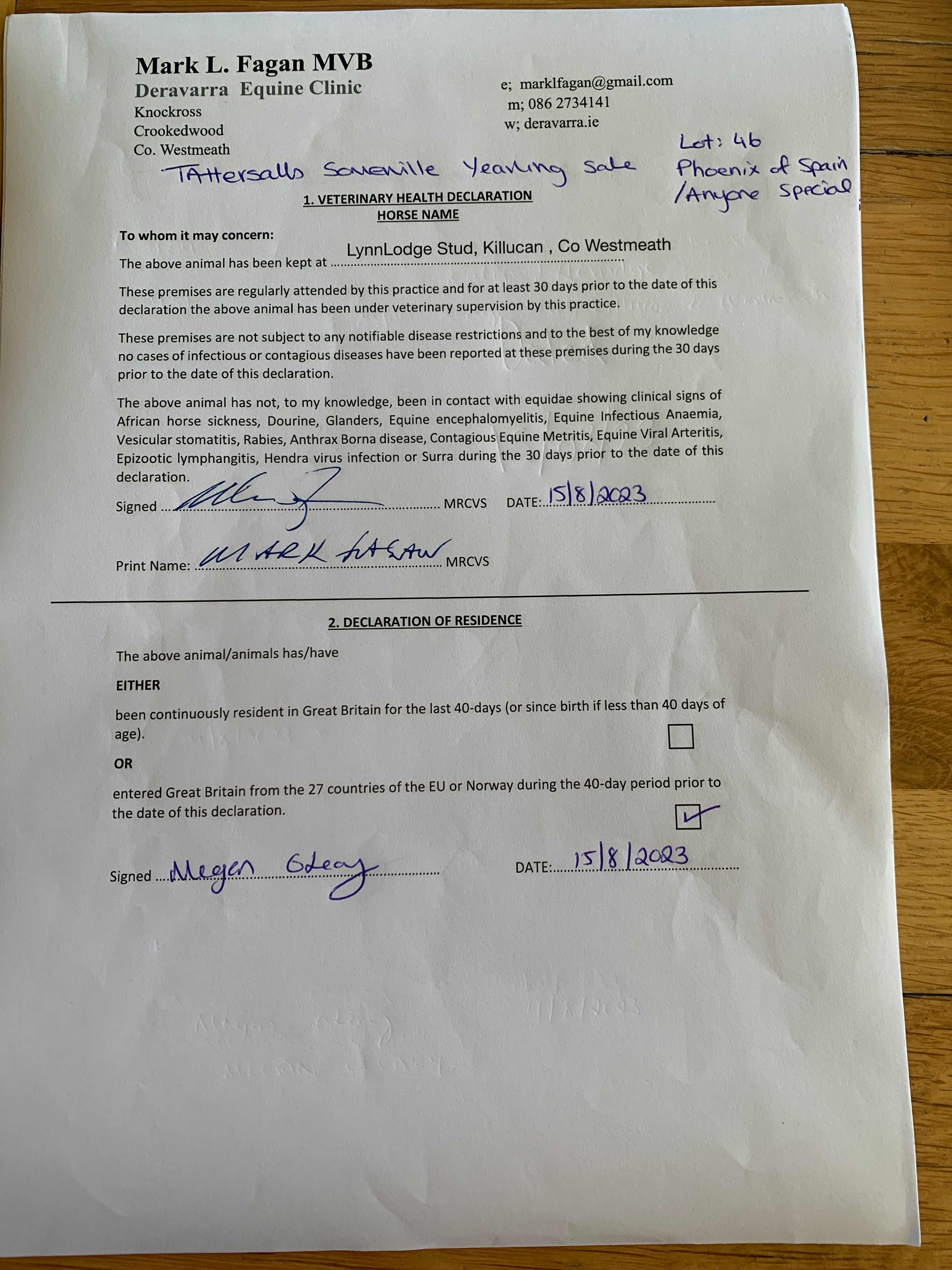 Consignor: Lynn Lodge Stud, Ireland