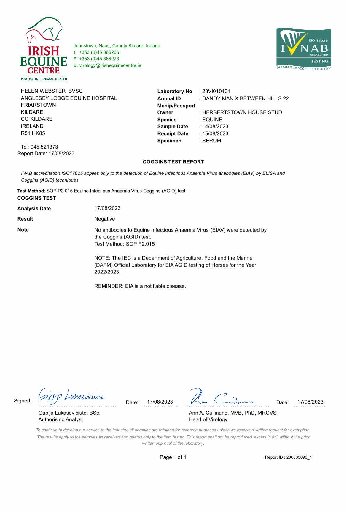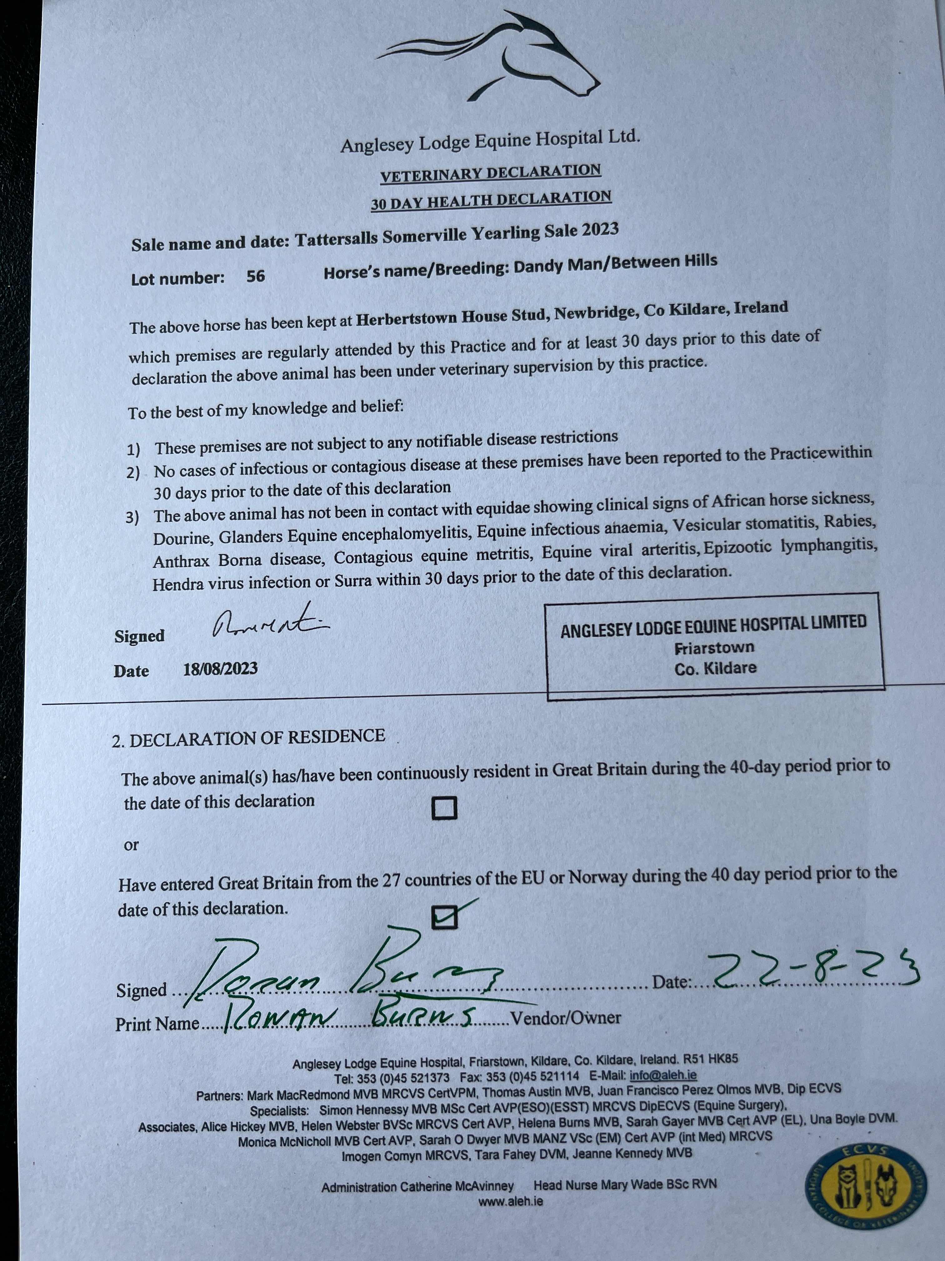 Consignor: Herbertstown House Stud (Co. Kildare), Ireland