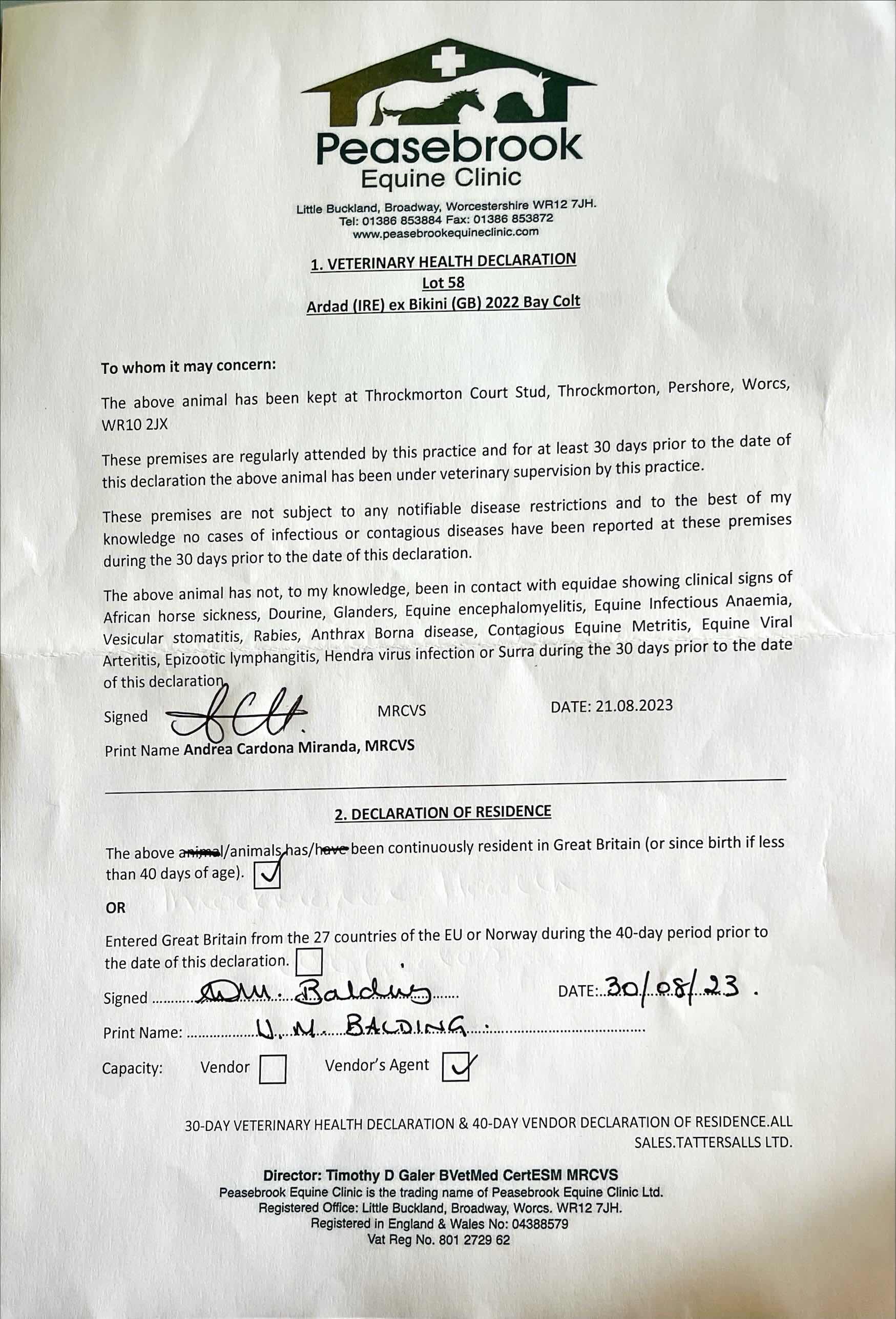 Consignor: Throckmorton Court Stud
