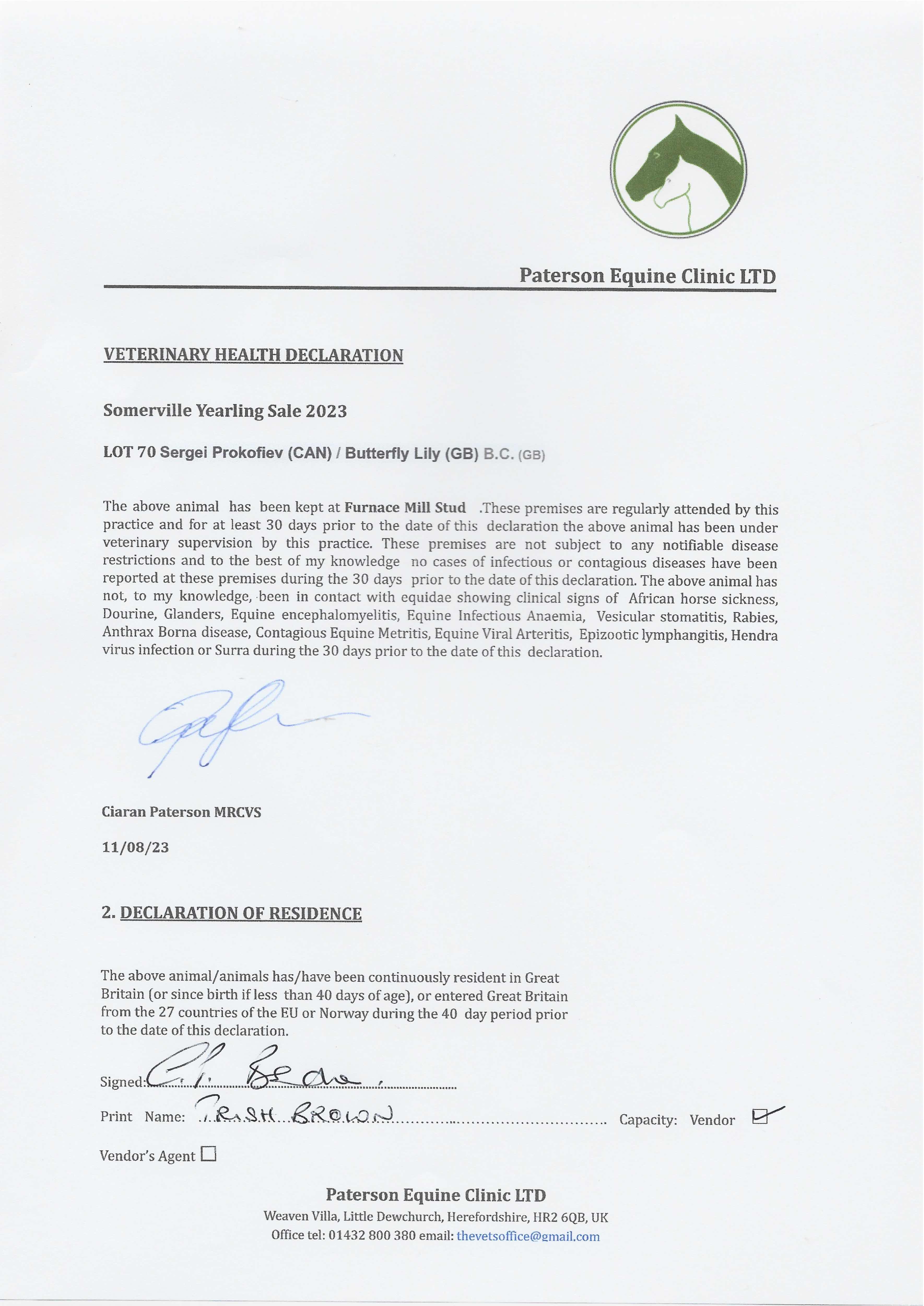Consignor: Furnace Mill Stud