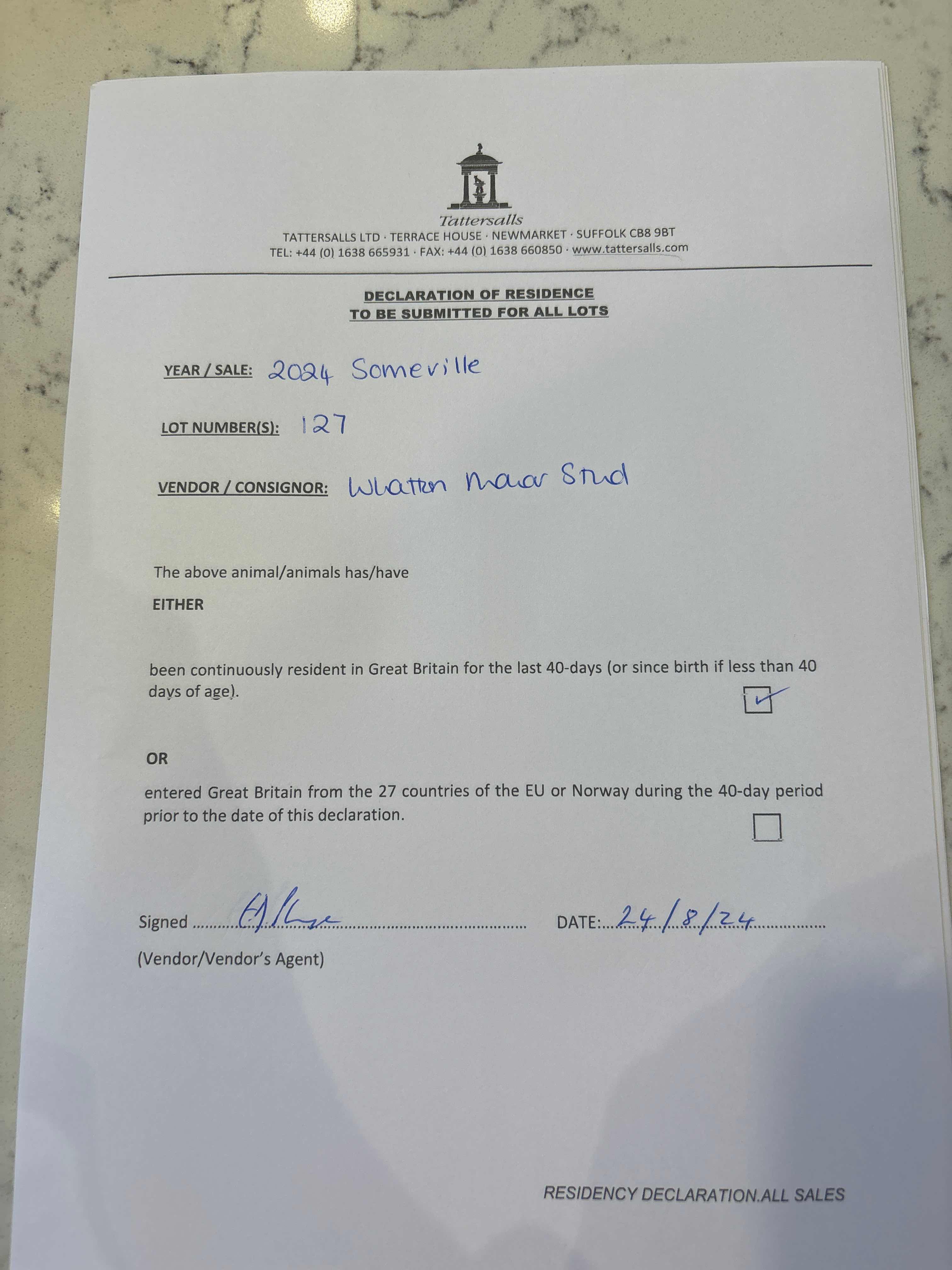 Consignor: Whatton Manor Stud