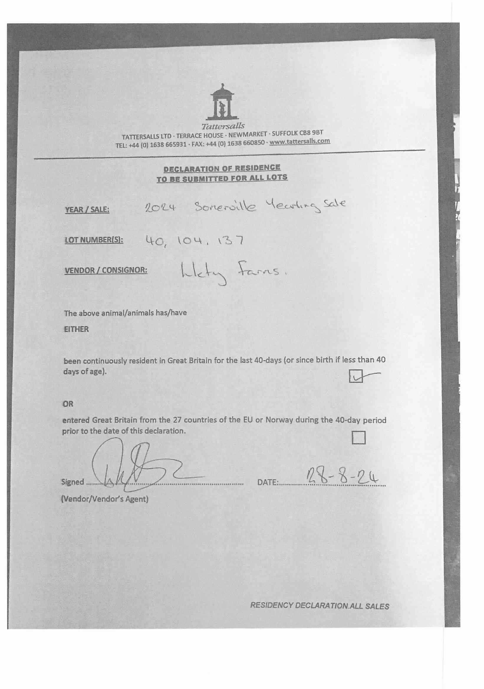Consignor: Llety Farms