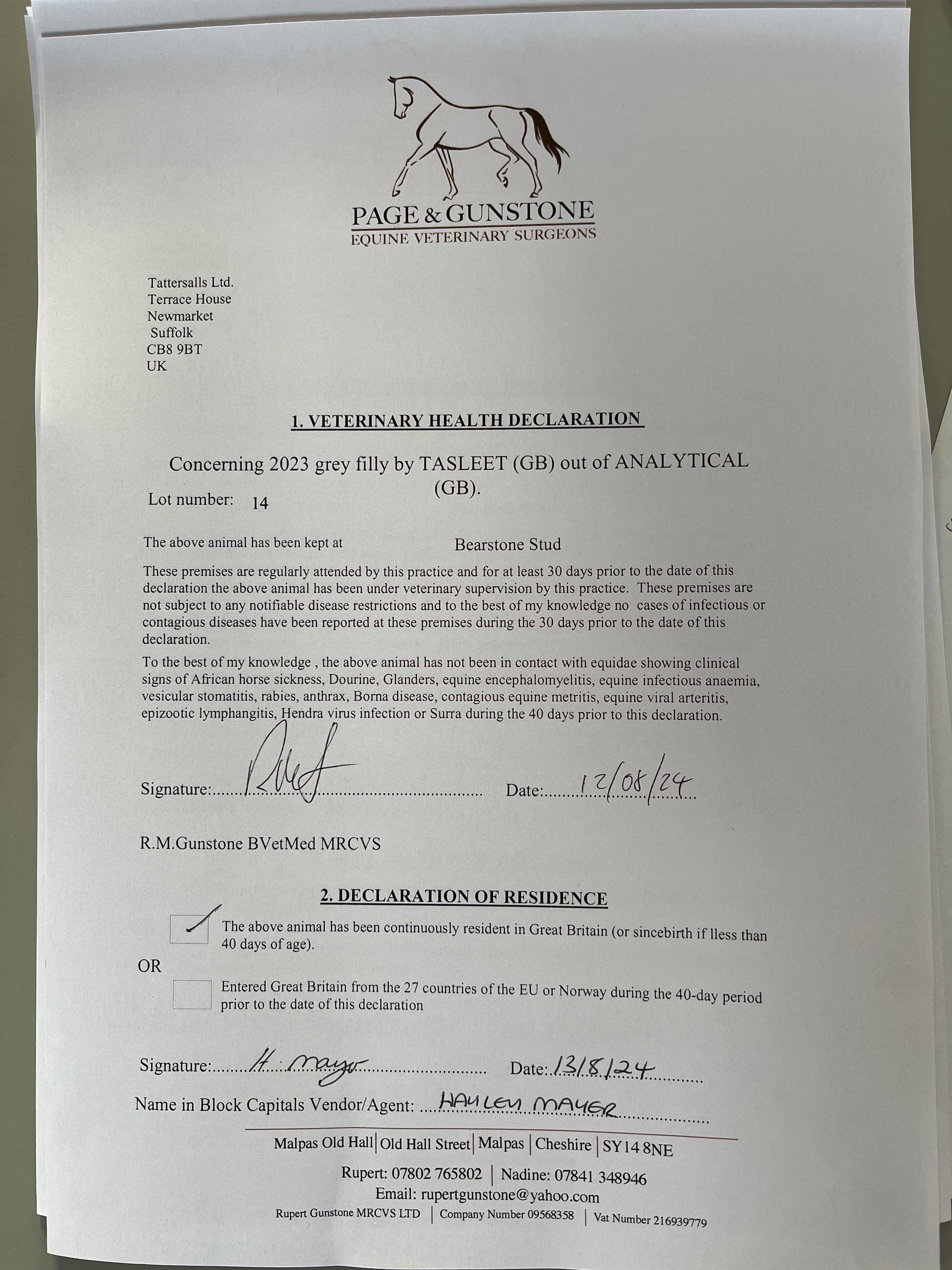 Consignor: Bearstone Stud