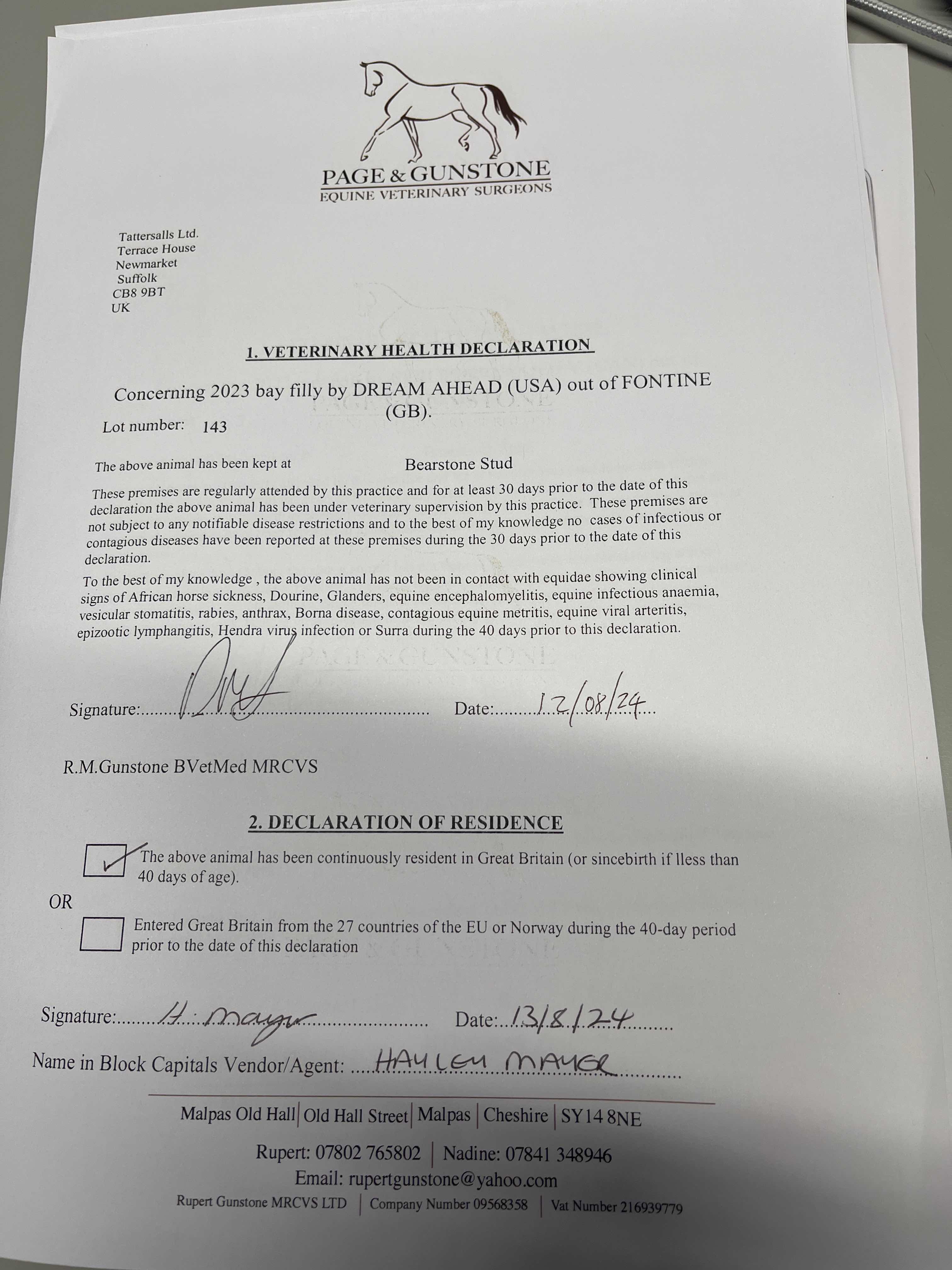 Consignor: Bearstone Stud