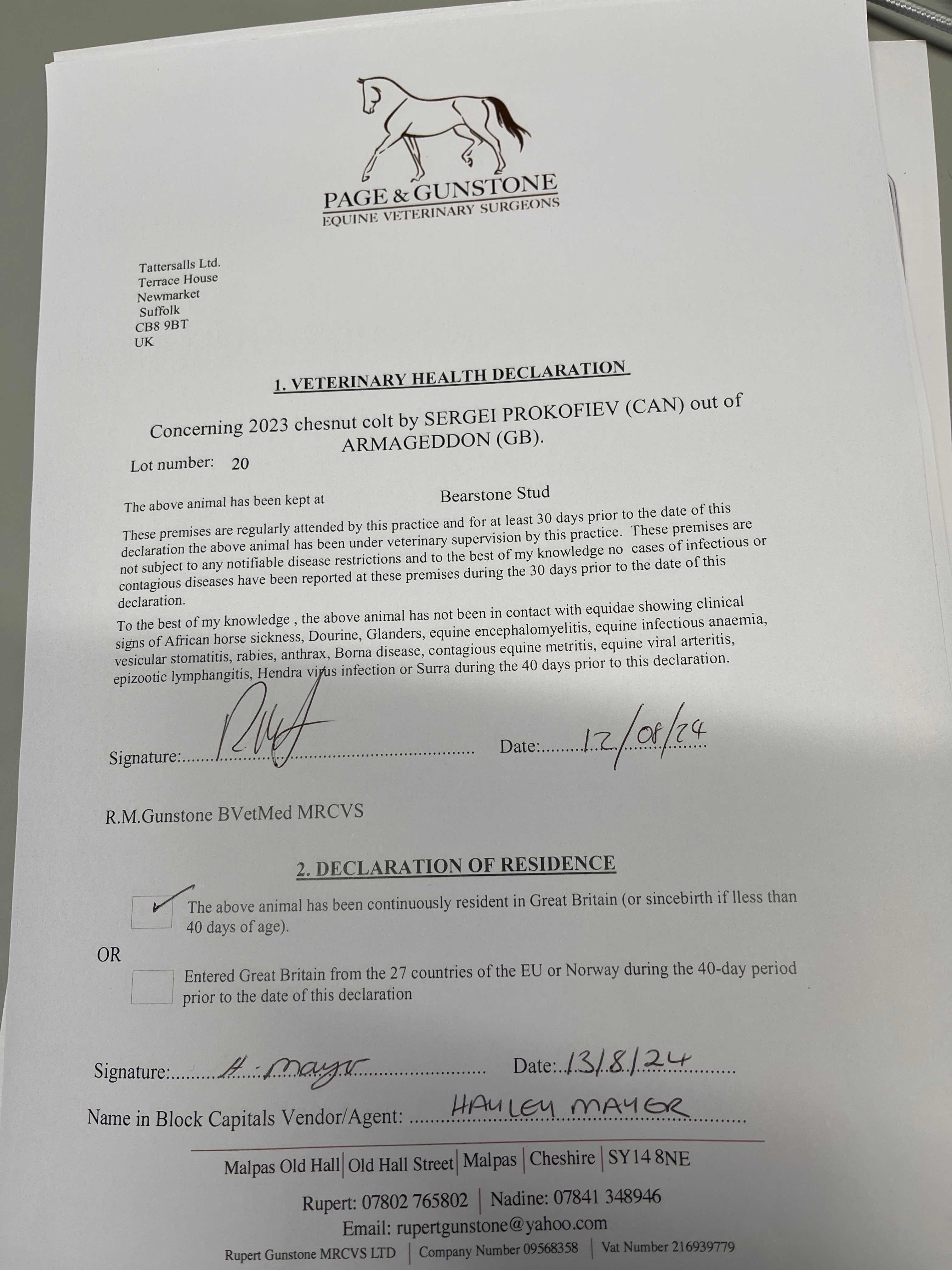 Online Sale - 19th September 2024 lot 125, Bearstone Stud=>Lot Not Sold 1,400 gns