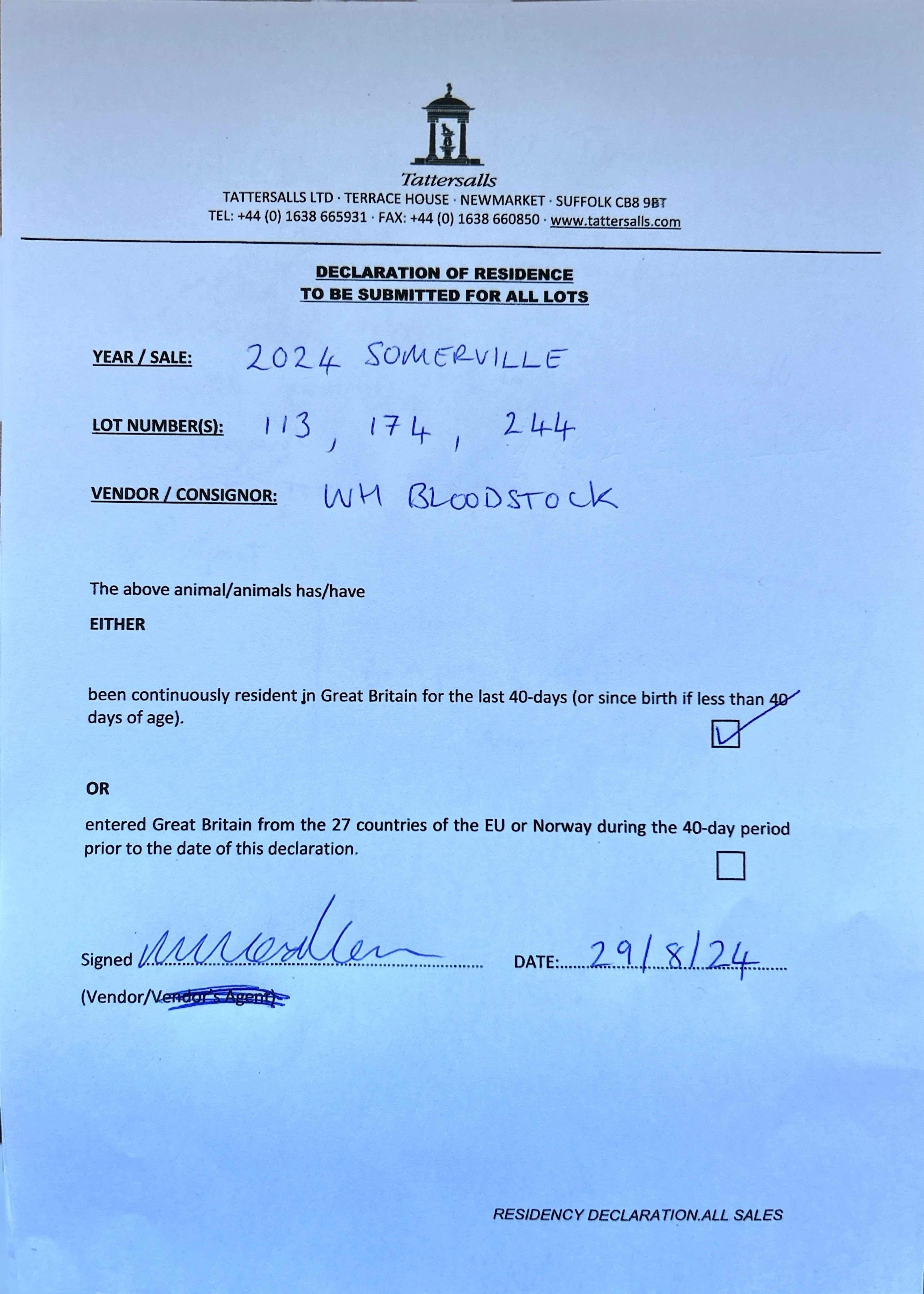 Consignor: WH Bloodstock