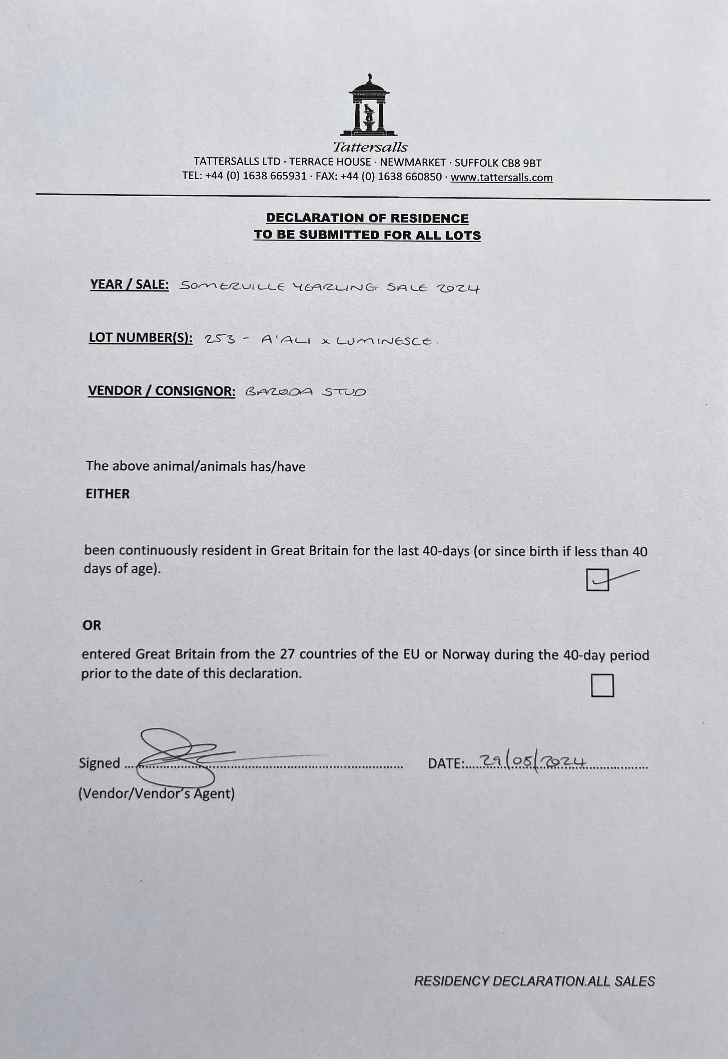 October Yearling Sale, Book 3 2025 lot 1513 F. 2024, Baroda Stud, Ireland=>Ivan Furtado 18,000 gns