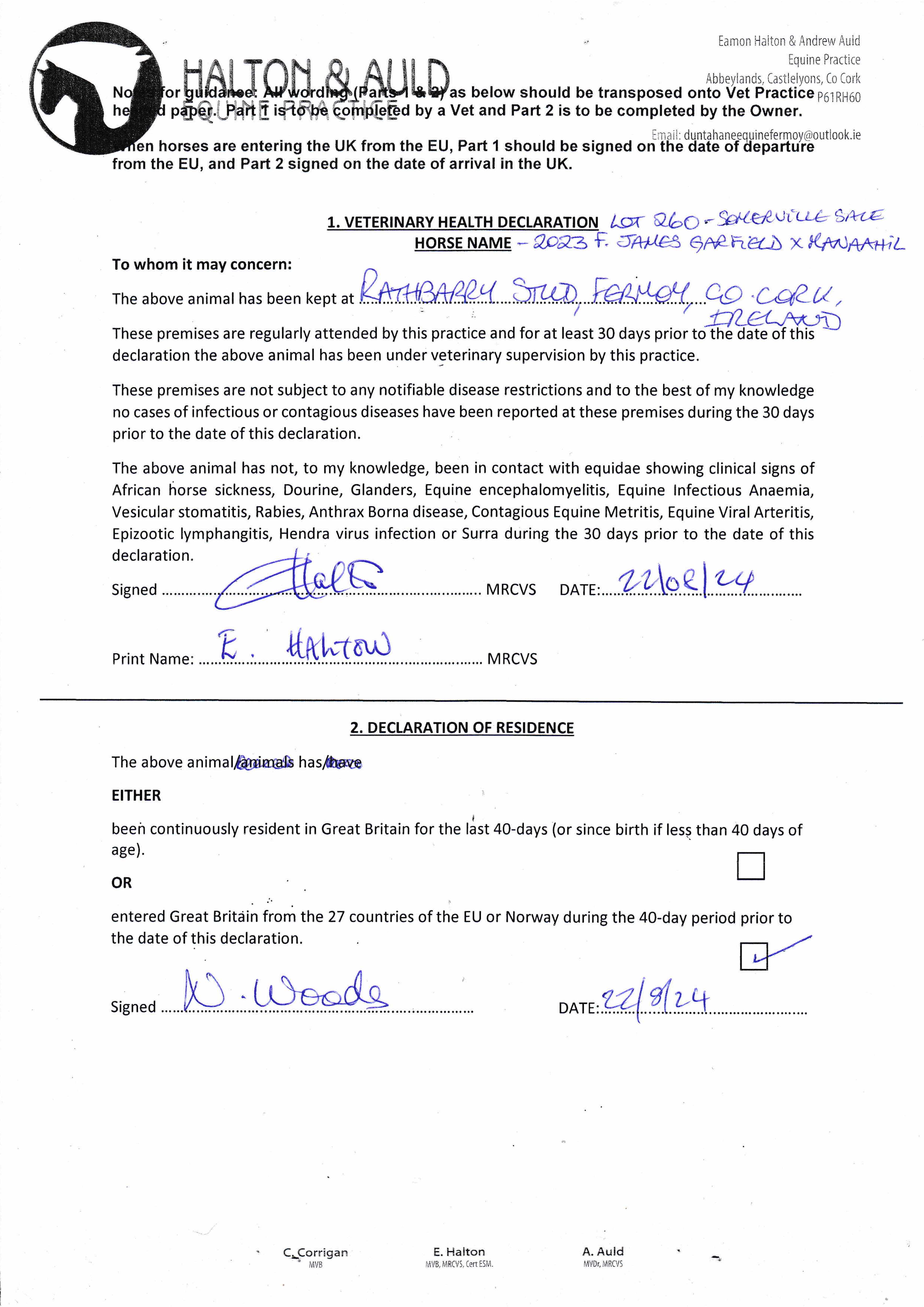 Consignor: Rathbarry Stud, Ireland