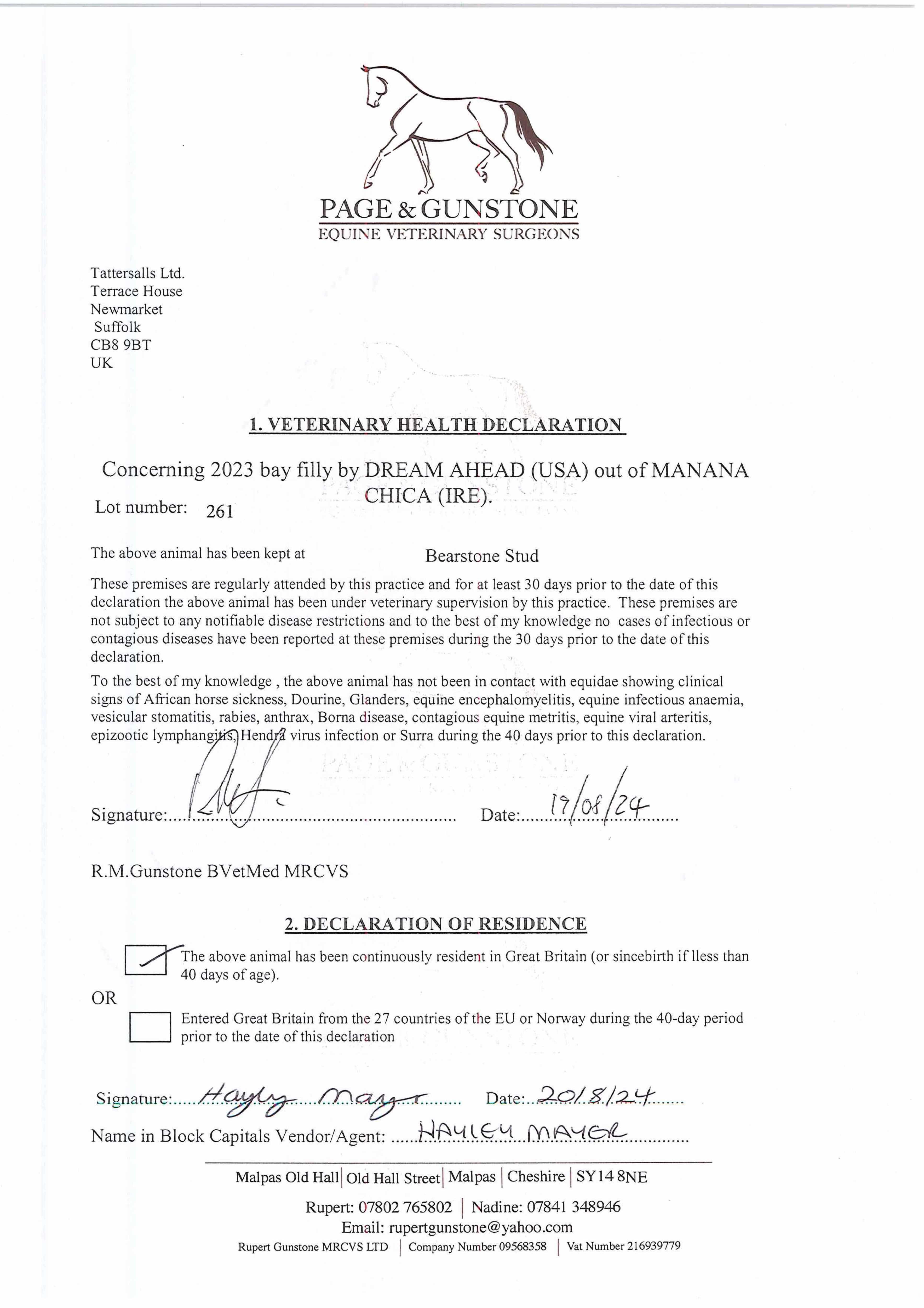 Online Sale - 19th September 2024 lot 114 Hasta Manyana (GB) (F. by Belardo (IRE)), Bearstone Stud=>Vendor 2,000 gns