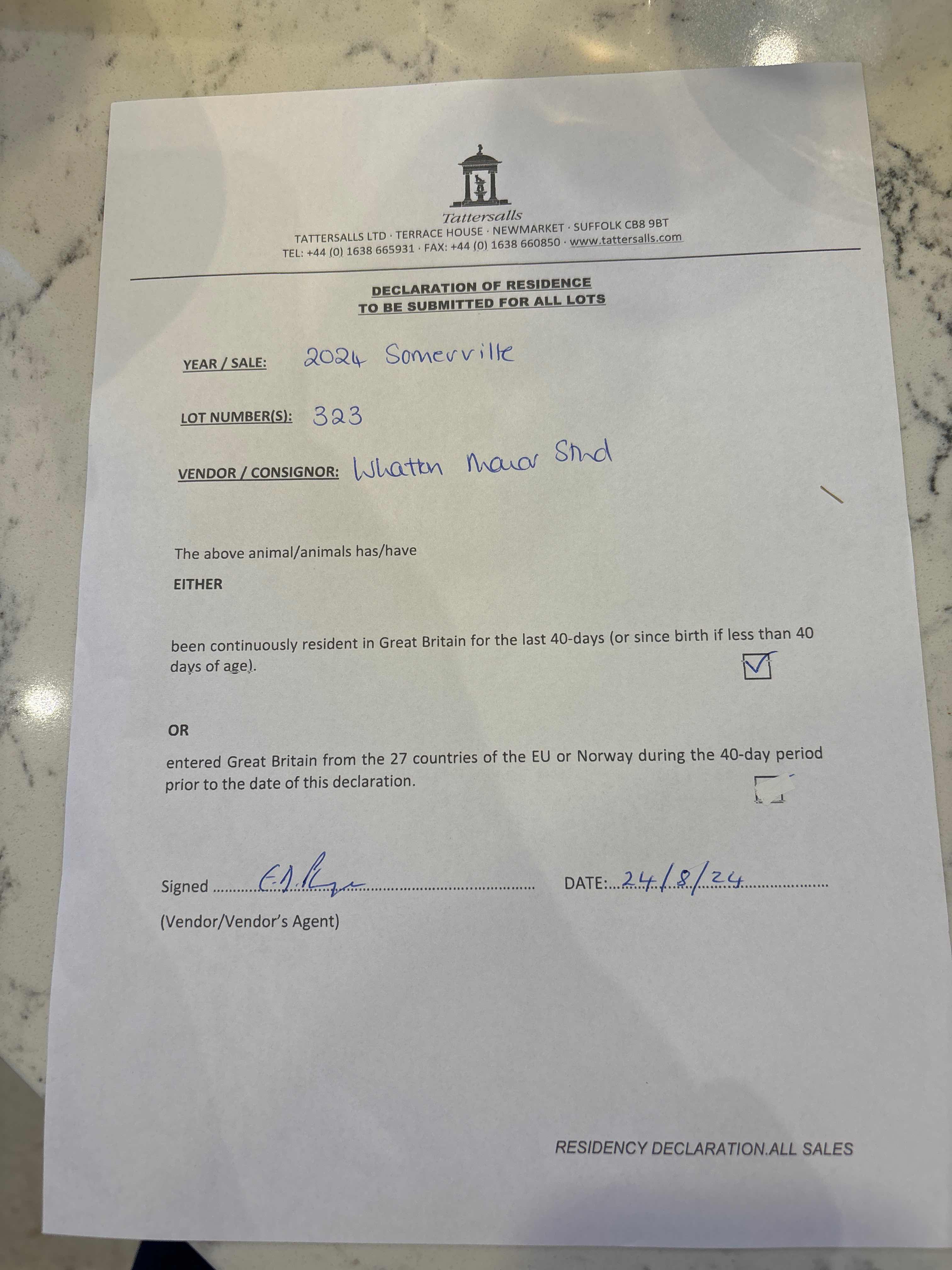 Consignor: Whatton Manor Stud