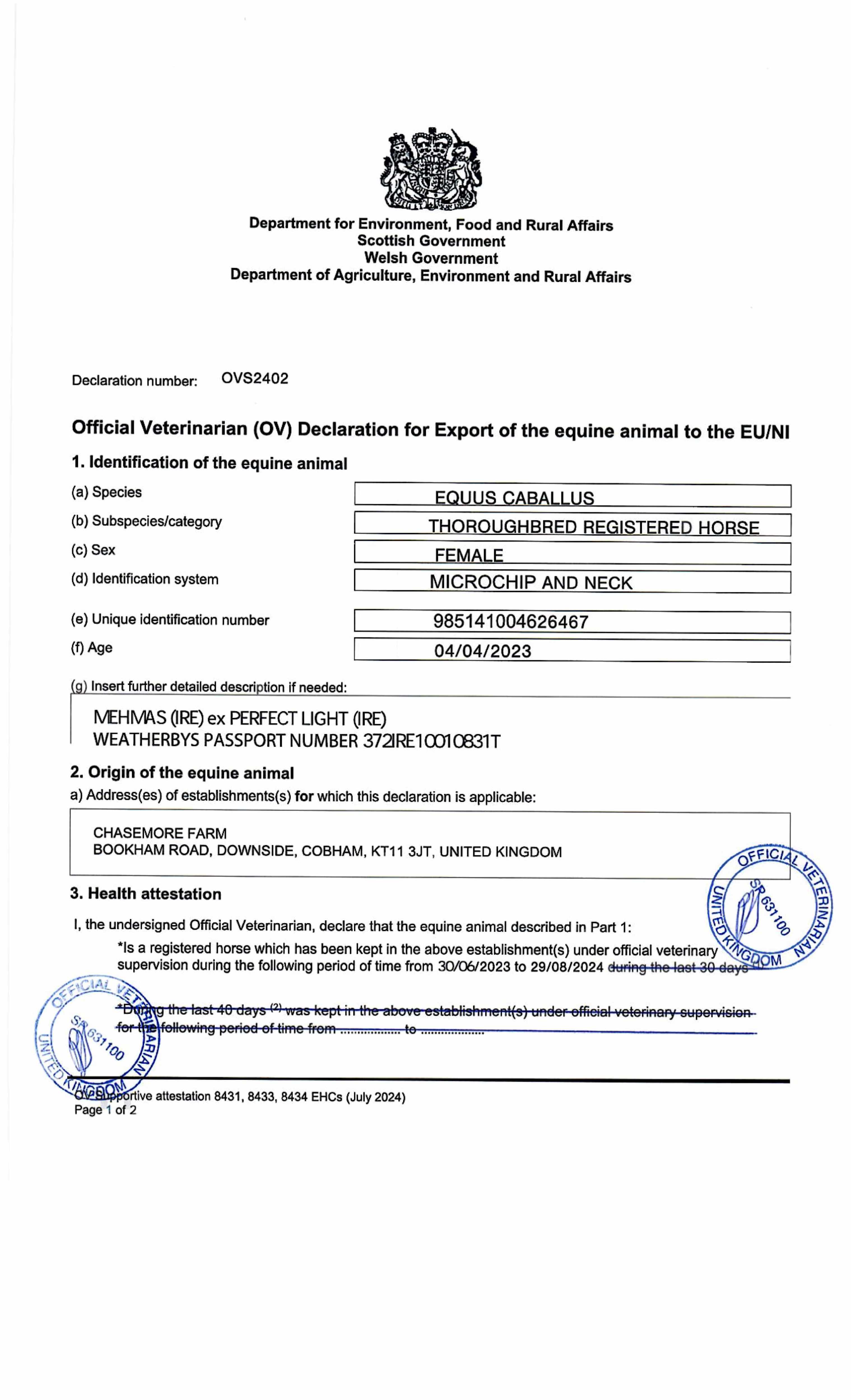Contact: Jack Conroy  ✆ 07769 258096  ✉ studoffice@chasemorefarm.co.uk