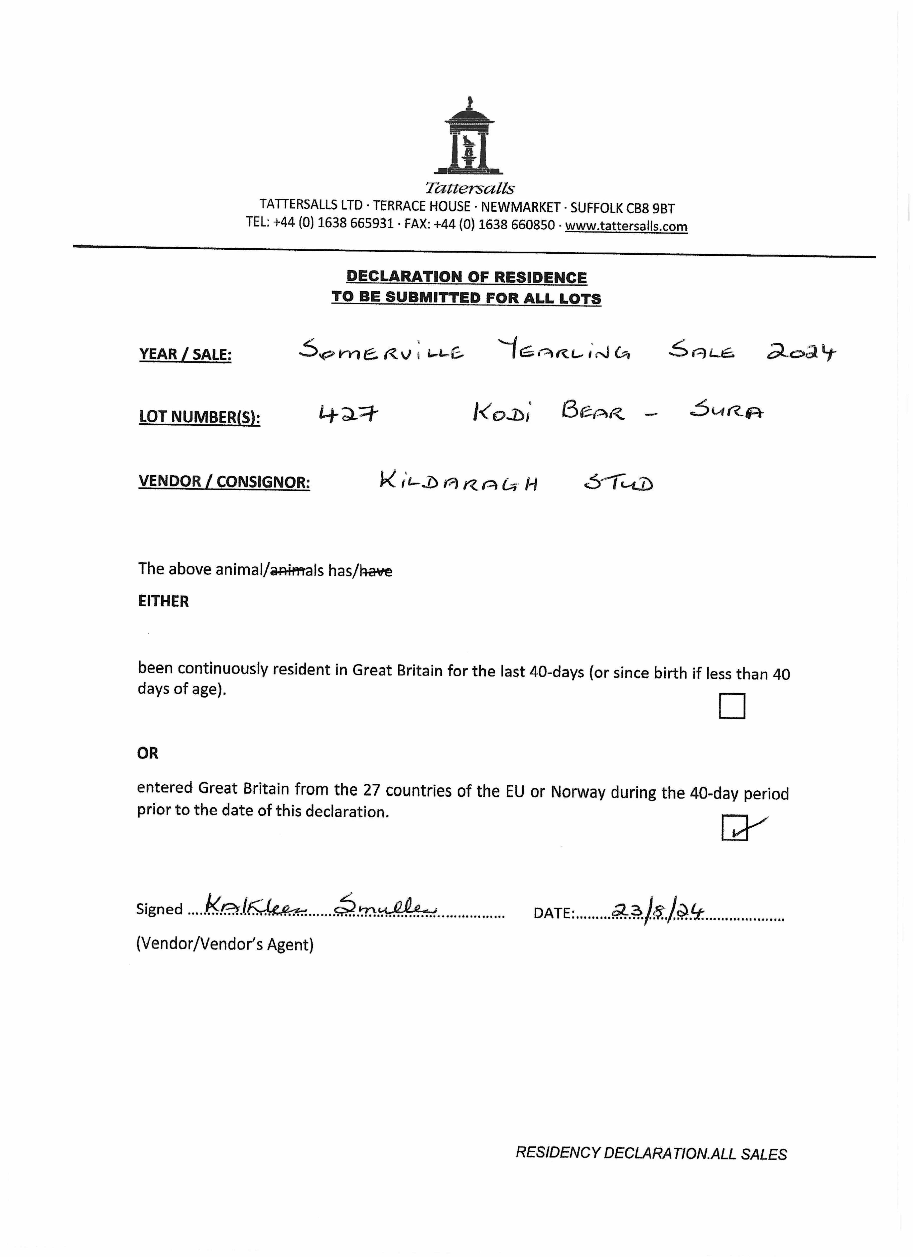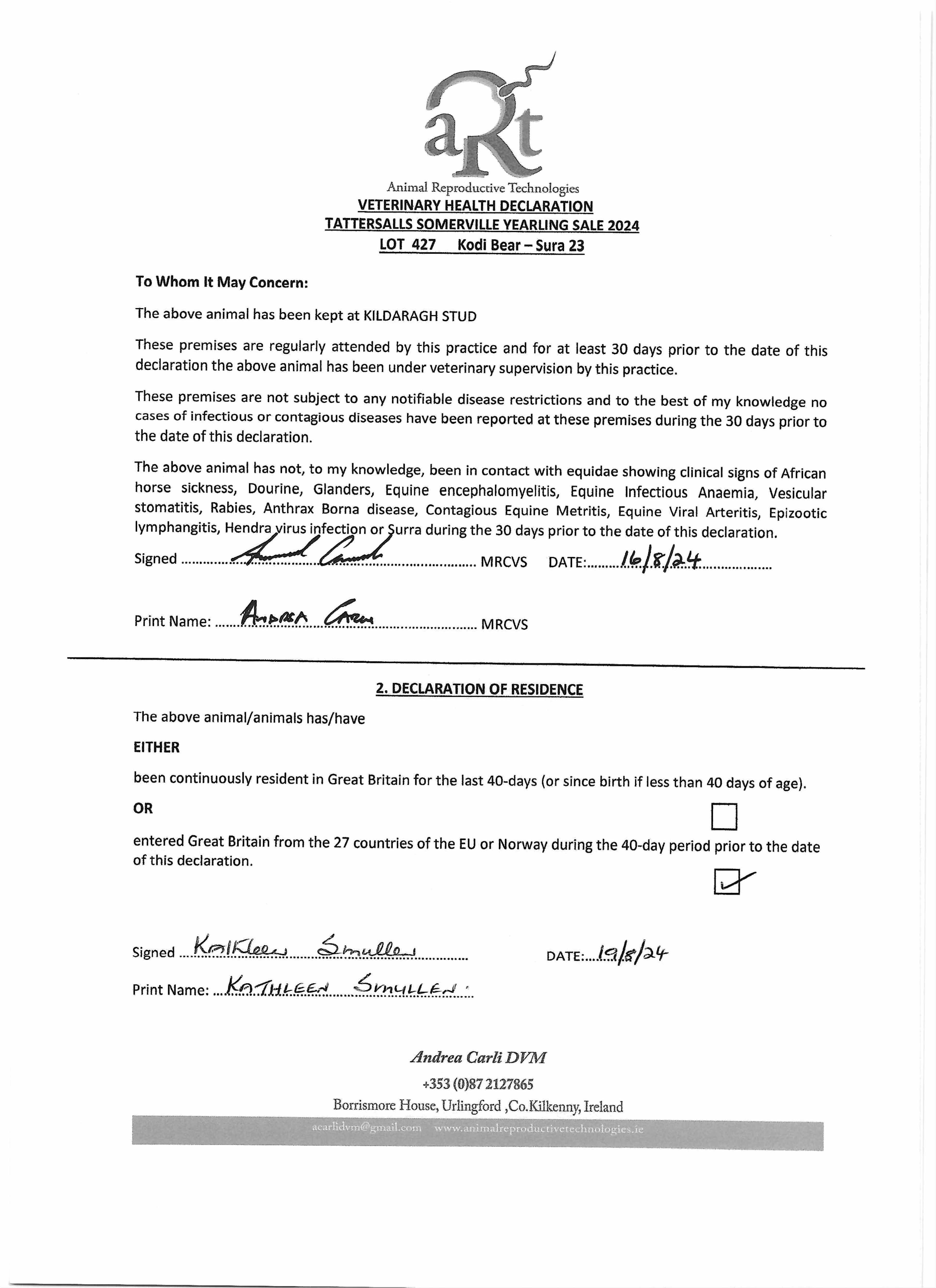 Consignor: Kildaragh Stud, Ireland (Agent)